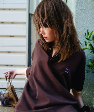 左胸には蝶の刺繍が施されています。ポロシャツでは定番となっているコットンピケ素材を採用しており、さらりとしたドライな着心地となっています。