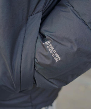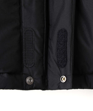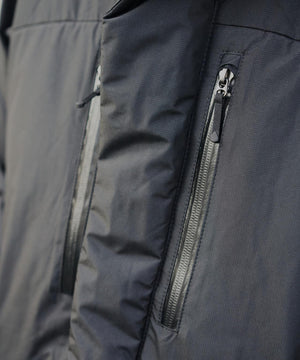 中綿入りの内襟やフロントのダブルフラップなどでコールドスポットを軽減。