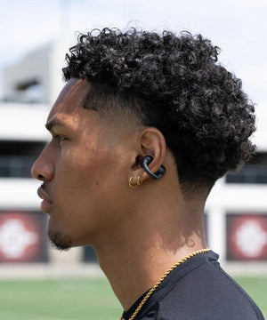 耳をふさがないイヤーカフ型デザインで、長時間の使用でも安全性を損なうことなく、快適に使用することができます。