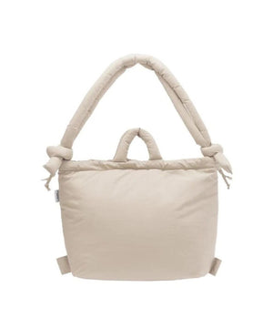 無段階で調整ができるショルダーストラップを結びかえて、斜め掛けバッグ、バックパック、ハンドバッグの3wayにアレンジしお使いいただけます。