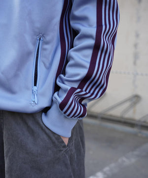 ベロア素材で作られることが多いリブカラートラックジャケットをポリエステルジャージー素材で別注をかけています。