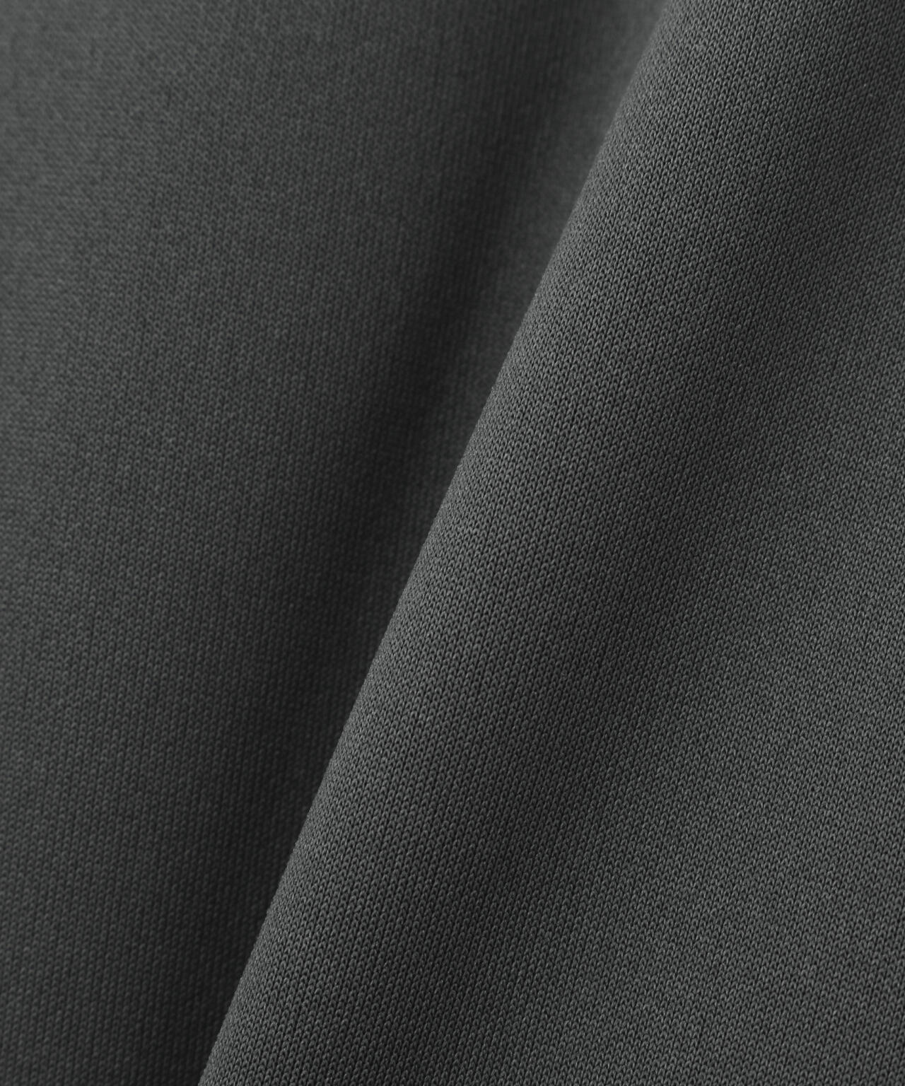 テーラリングが綺麗なショルダーとストンと落ちる身頃は重みのあるポリエステルジャージーならではの上品さが特徴の一着。