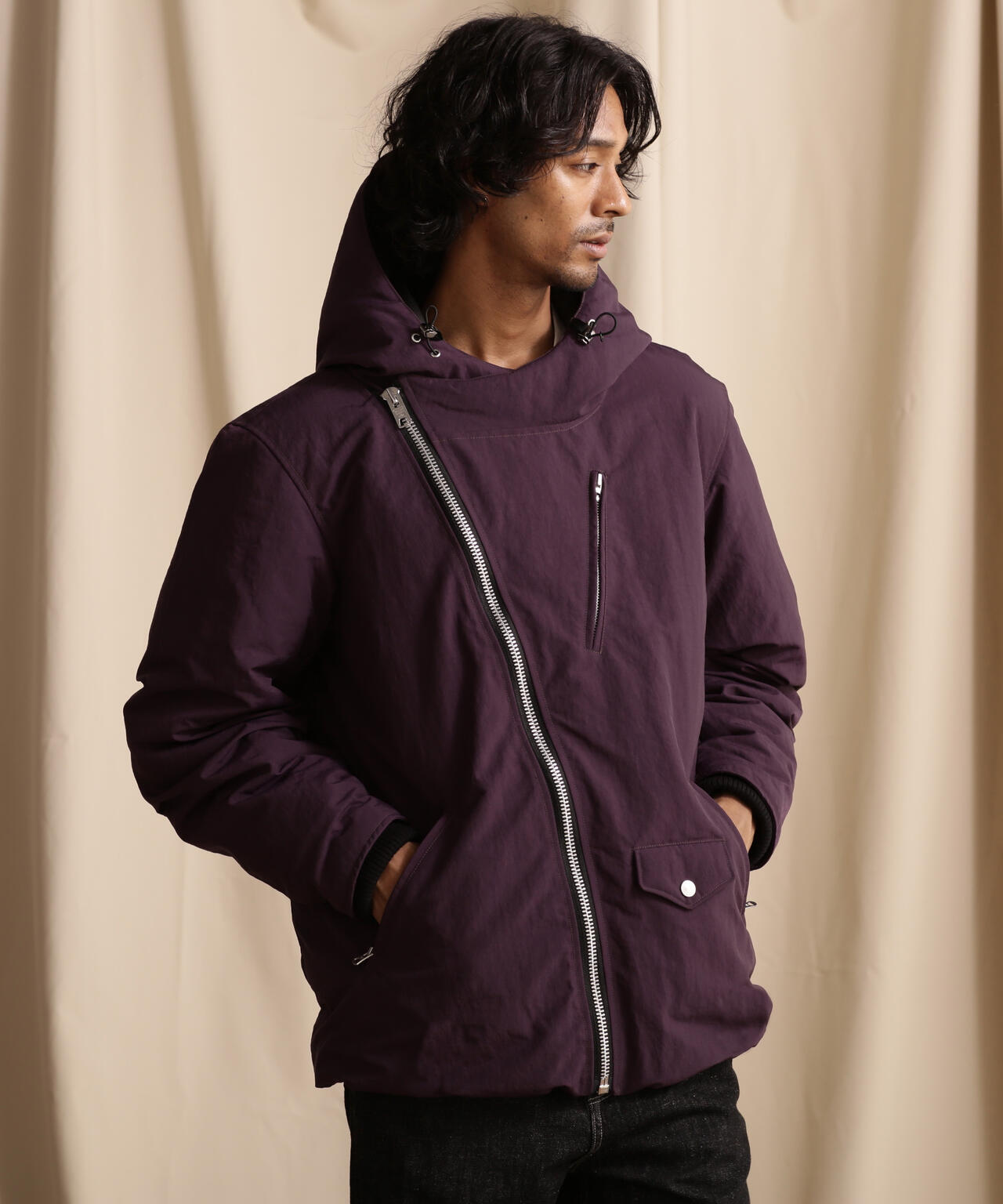 袖口はリブ仕様、前立て部分は重なるようにデザインされ、フードと裾はドローコード仕様でコールドスポットも抑えています。