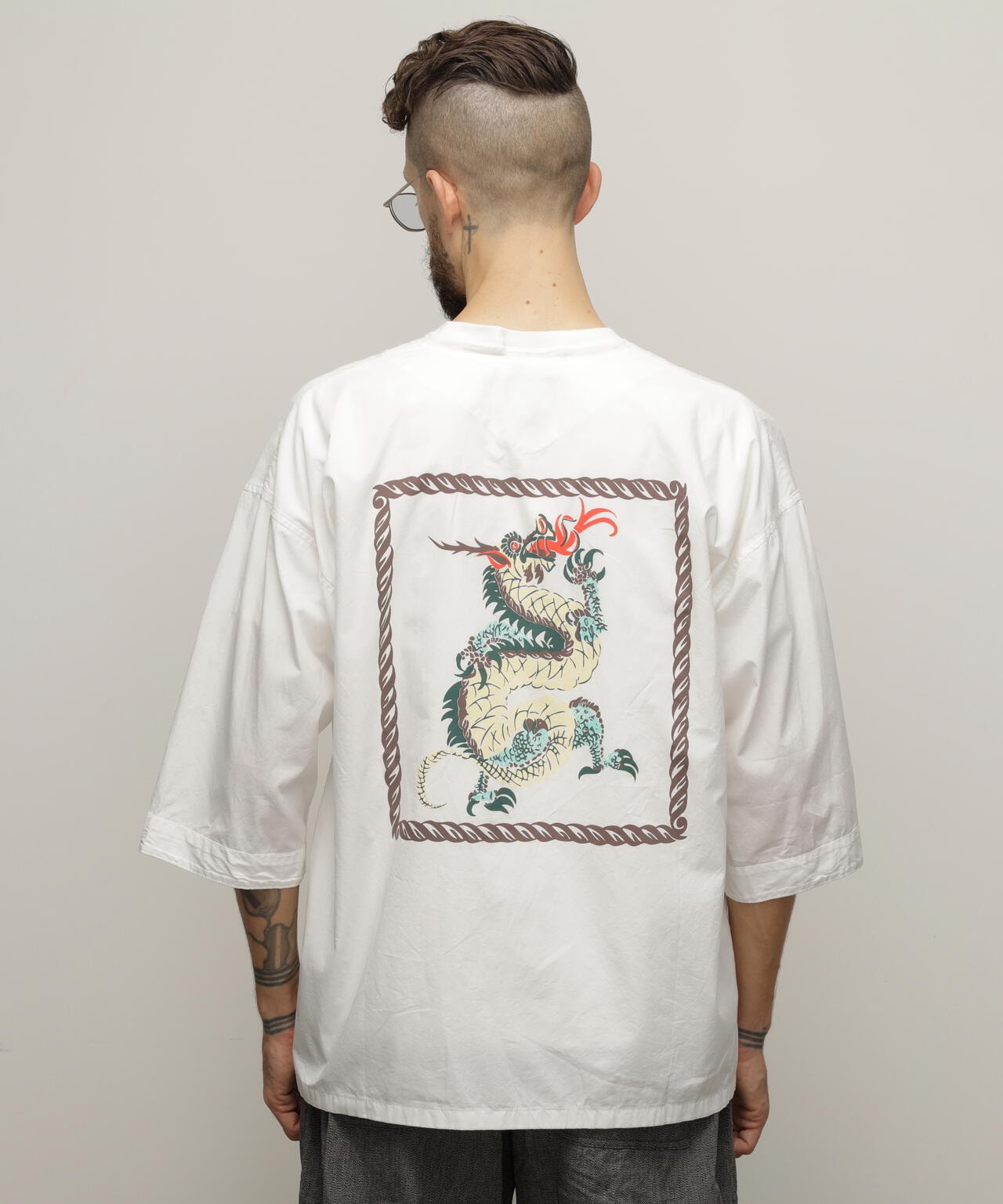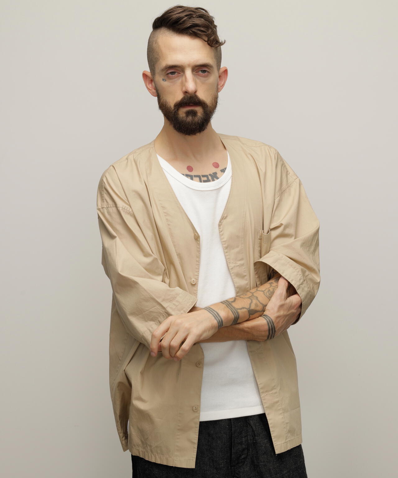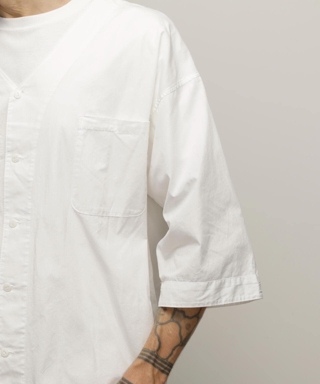 「ダボシャツ」という名前の通り、ダボっとしたシルエットが特徴で、広げてみると袖や胴回りがストレートで直線的なデザインになっています。