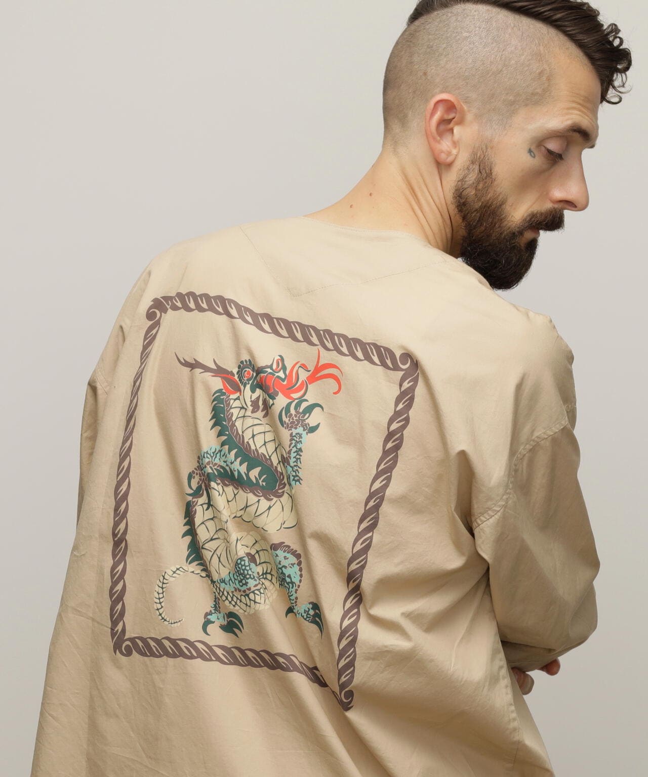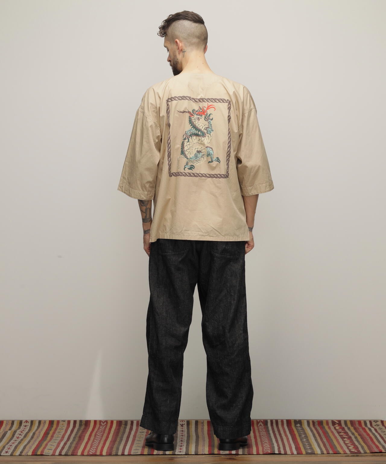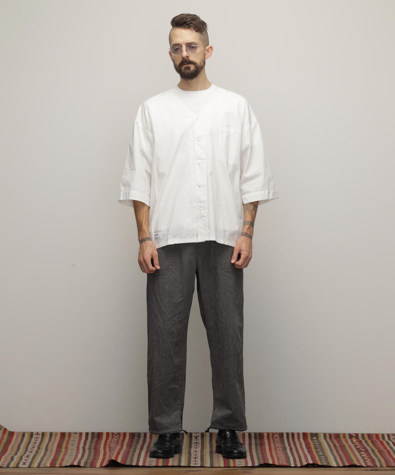 「ダボシャツ」という名前の通り、ダボっとしたシルエットが特徴で、広げてみると袖や胴回りがストレートで直線的なデザインになっています。
