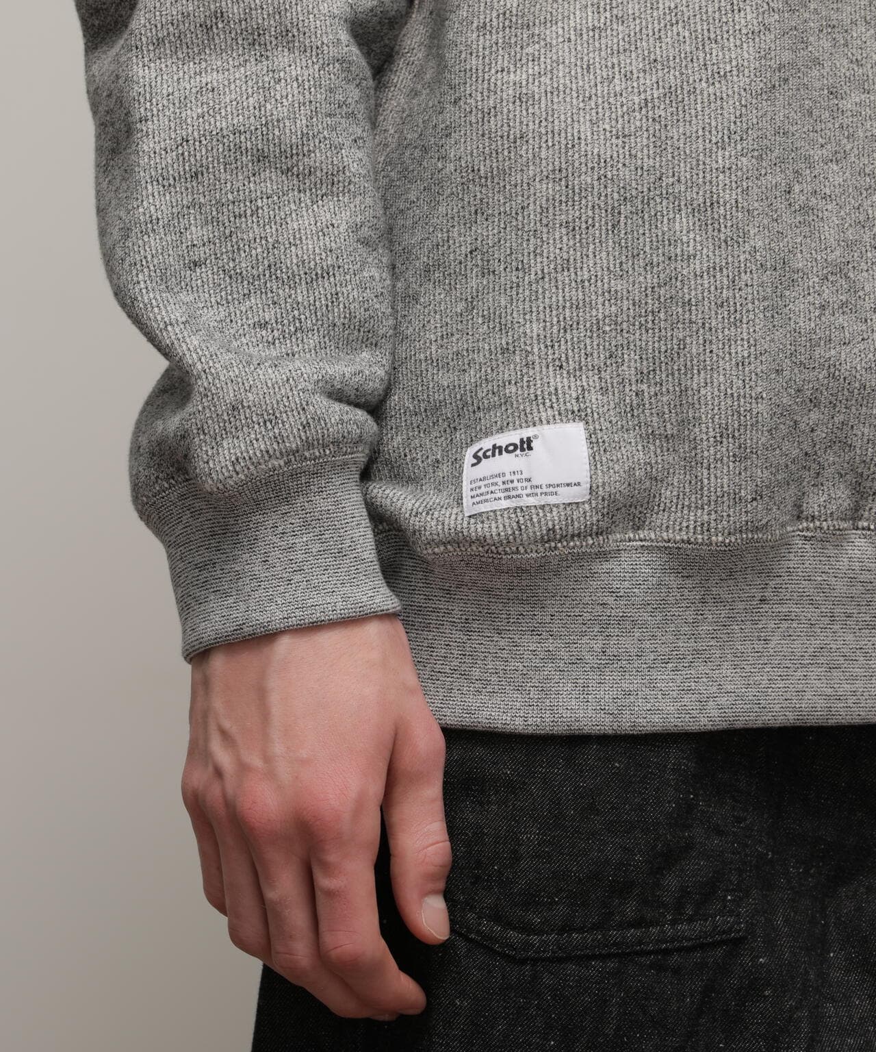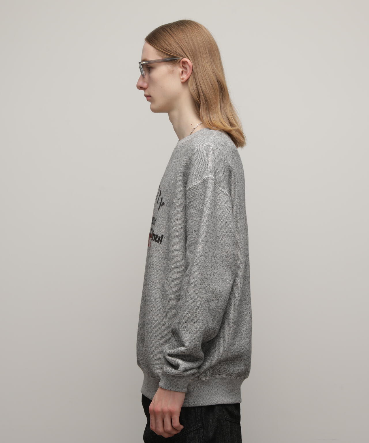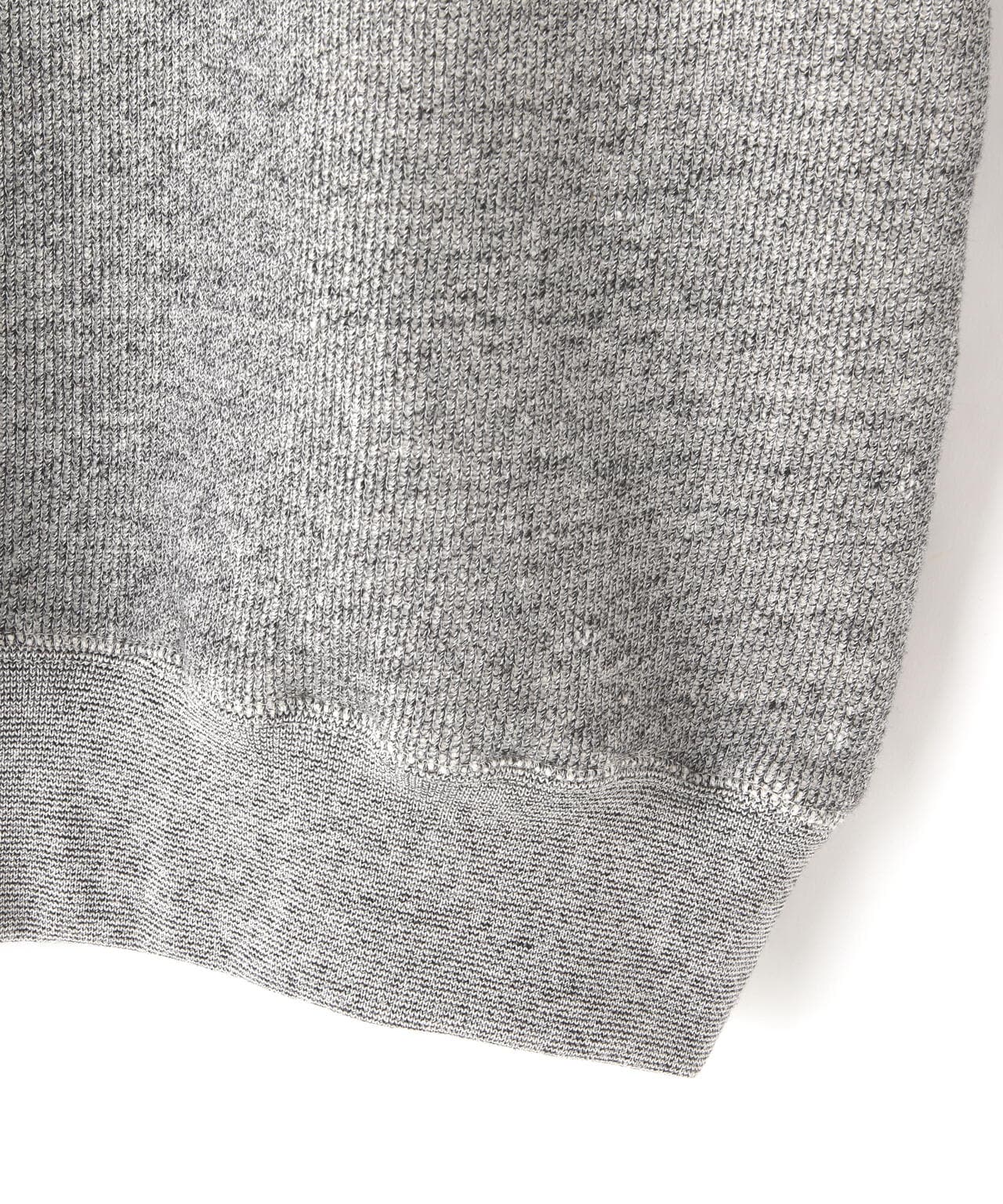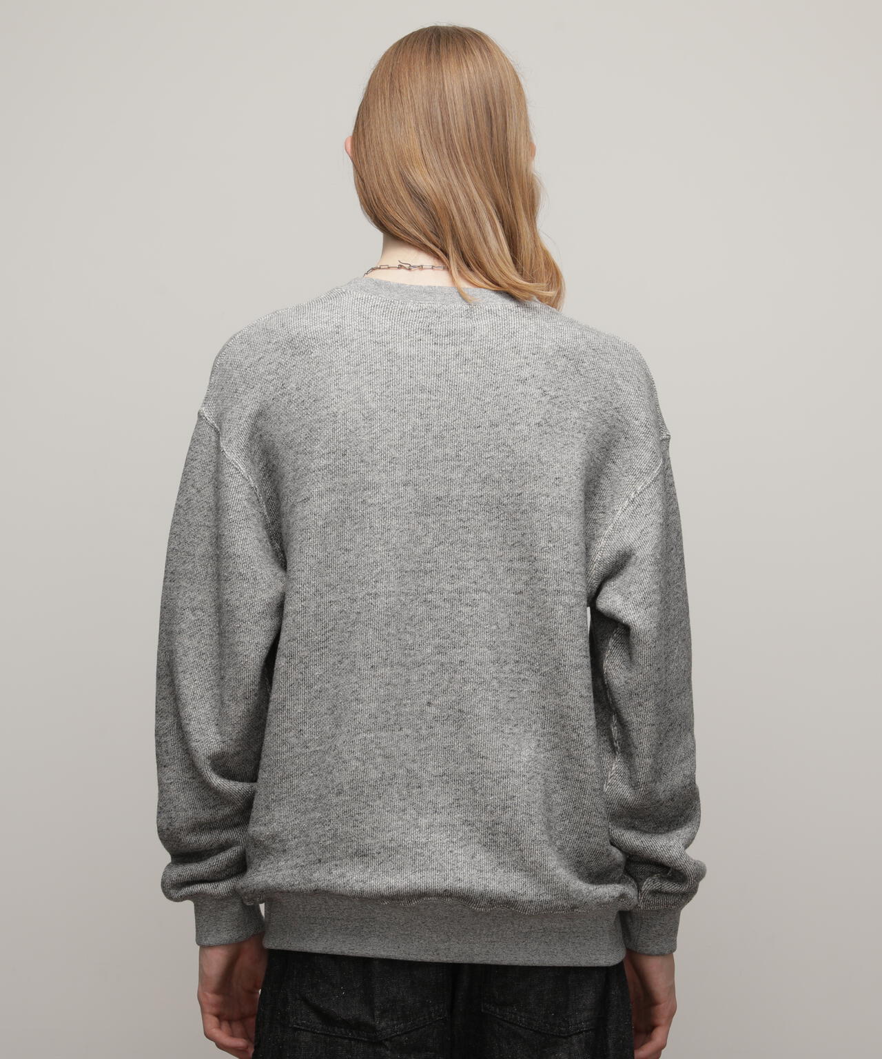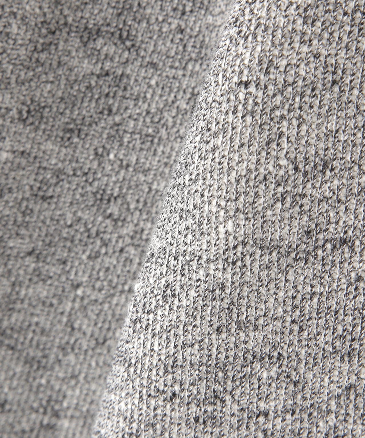 表面の天竺を撚杢で編むことにより、ごま塩感が際立ったスウェット。