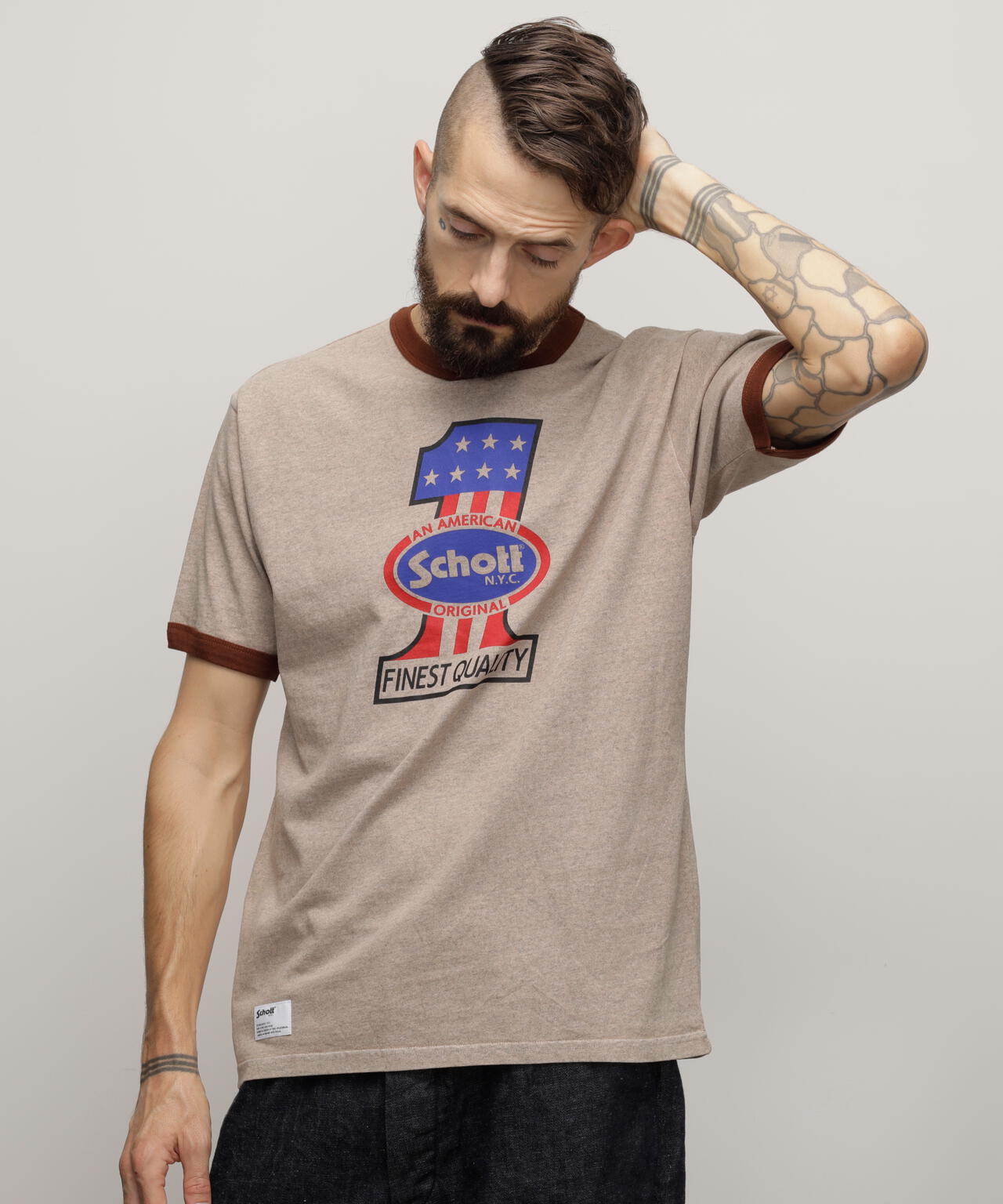 それを称えた星条旗モチーフのNO.1とSchottの人気ロゴでもあるオーバルロゴをデザインインさせたオリジナルグラフィック。