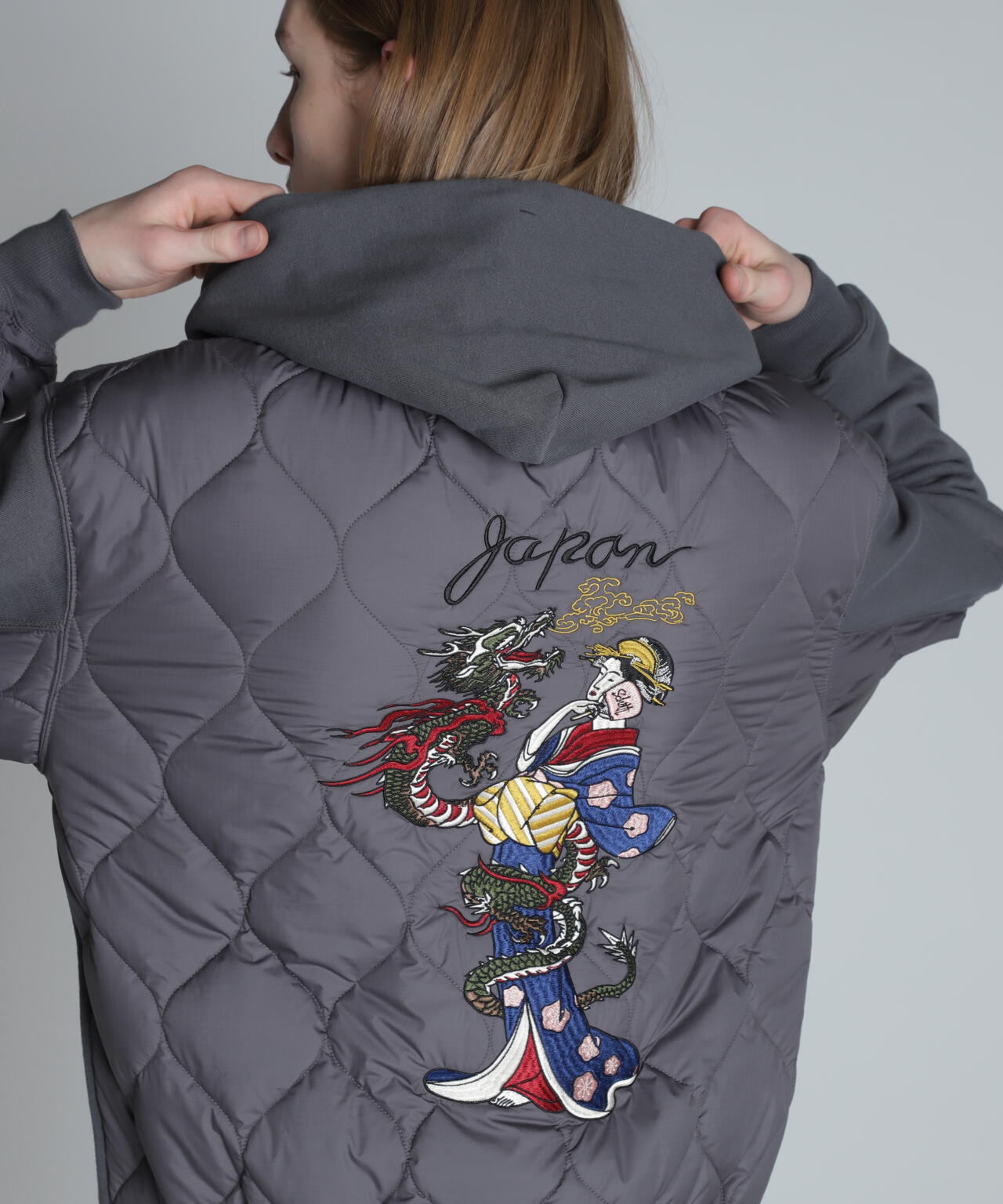 LADY WITH DRAGON QUILTED COMBI. ZIP HOOD/レディ ウィズ ドラゴン キルティング コンビ パーカー