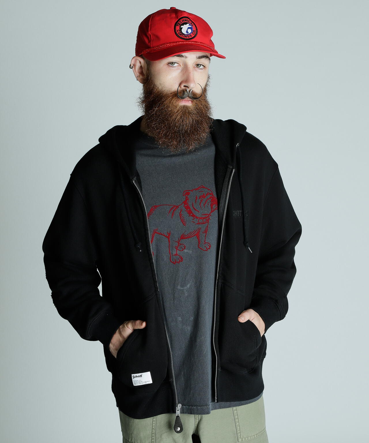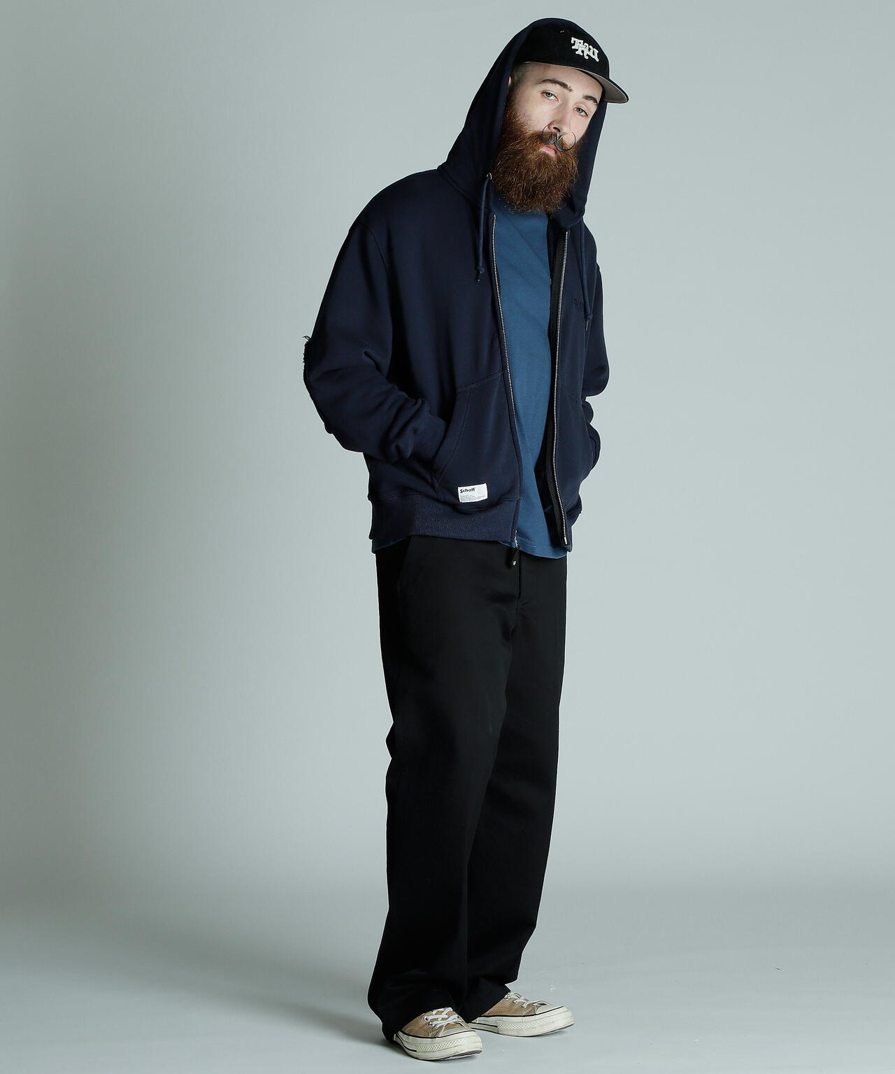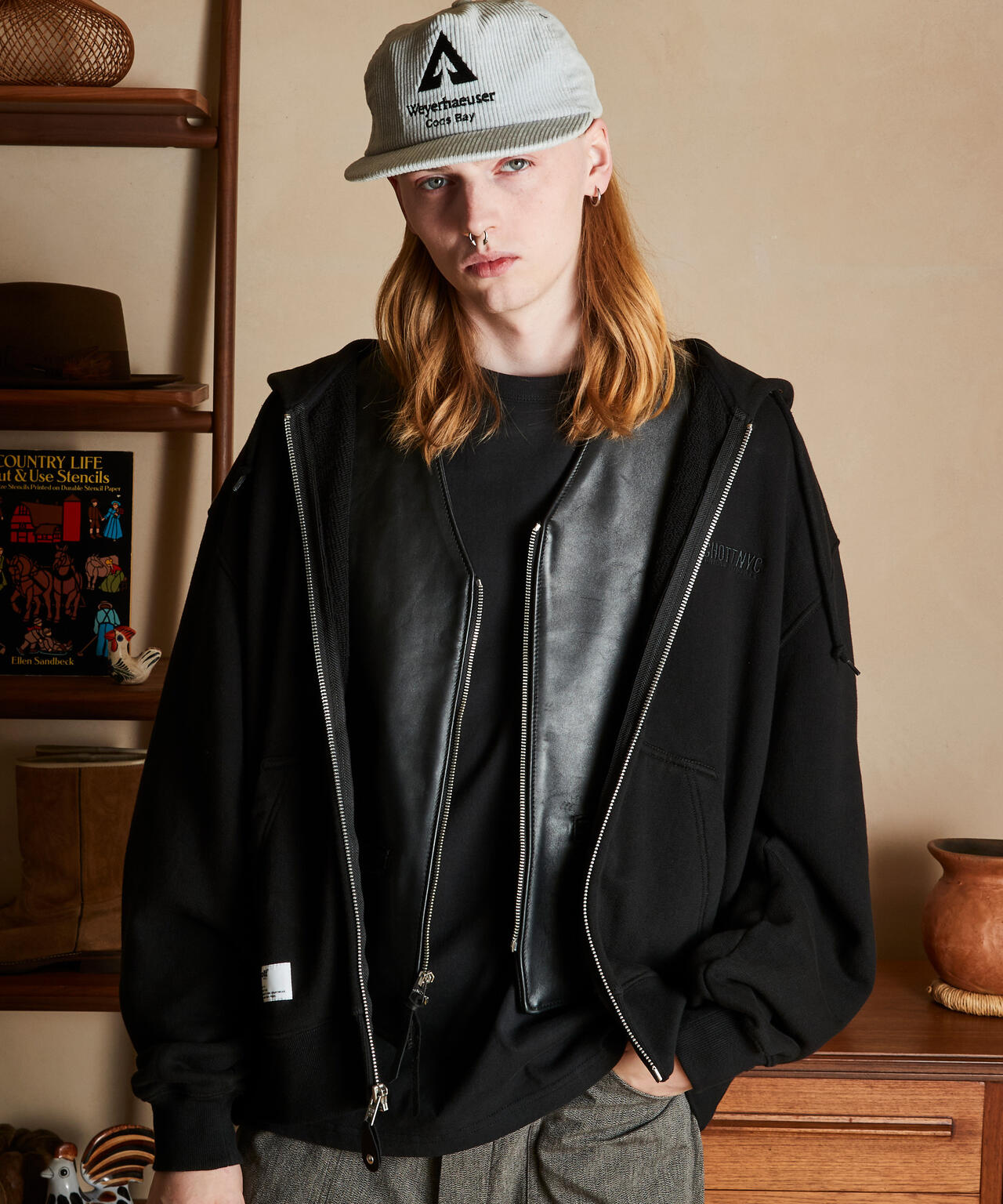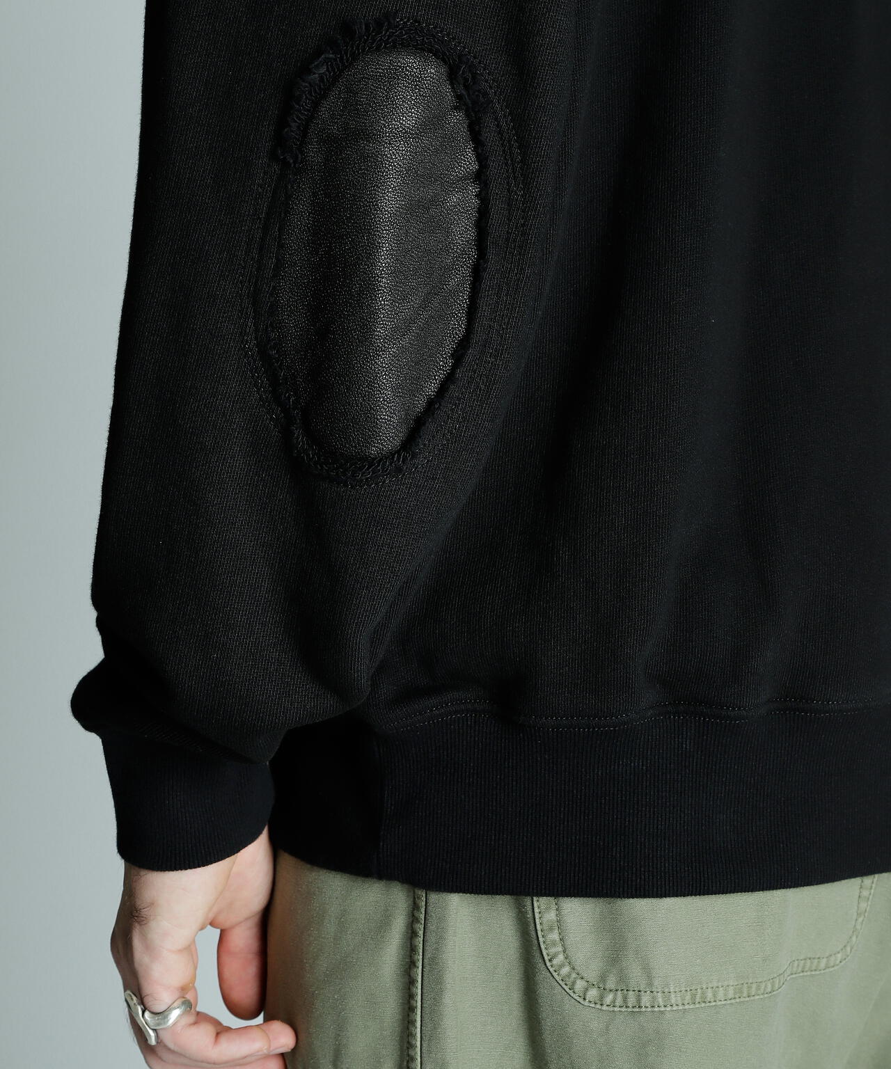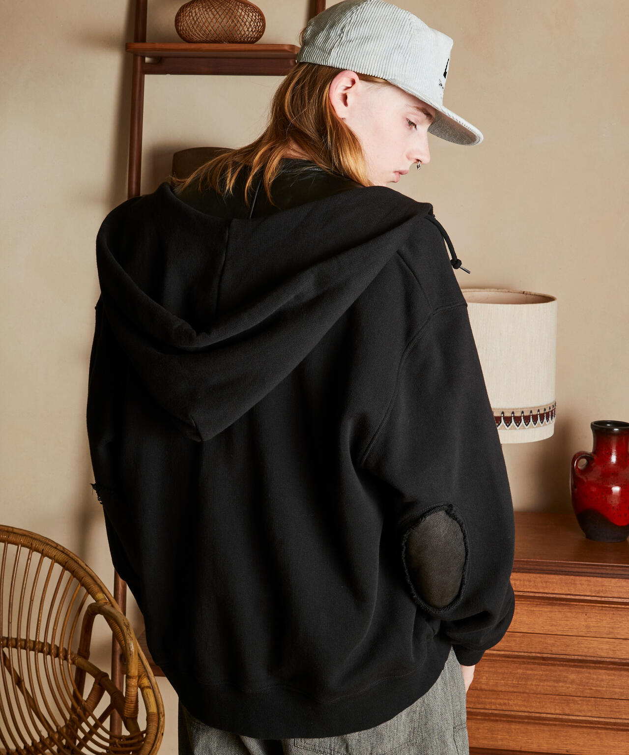 LEATHER ELBOW PATCH ZIP HOODED SWEAT/レザー エルボーパッチ ジップパーカー