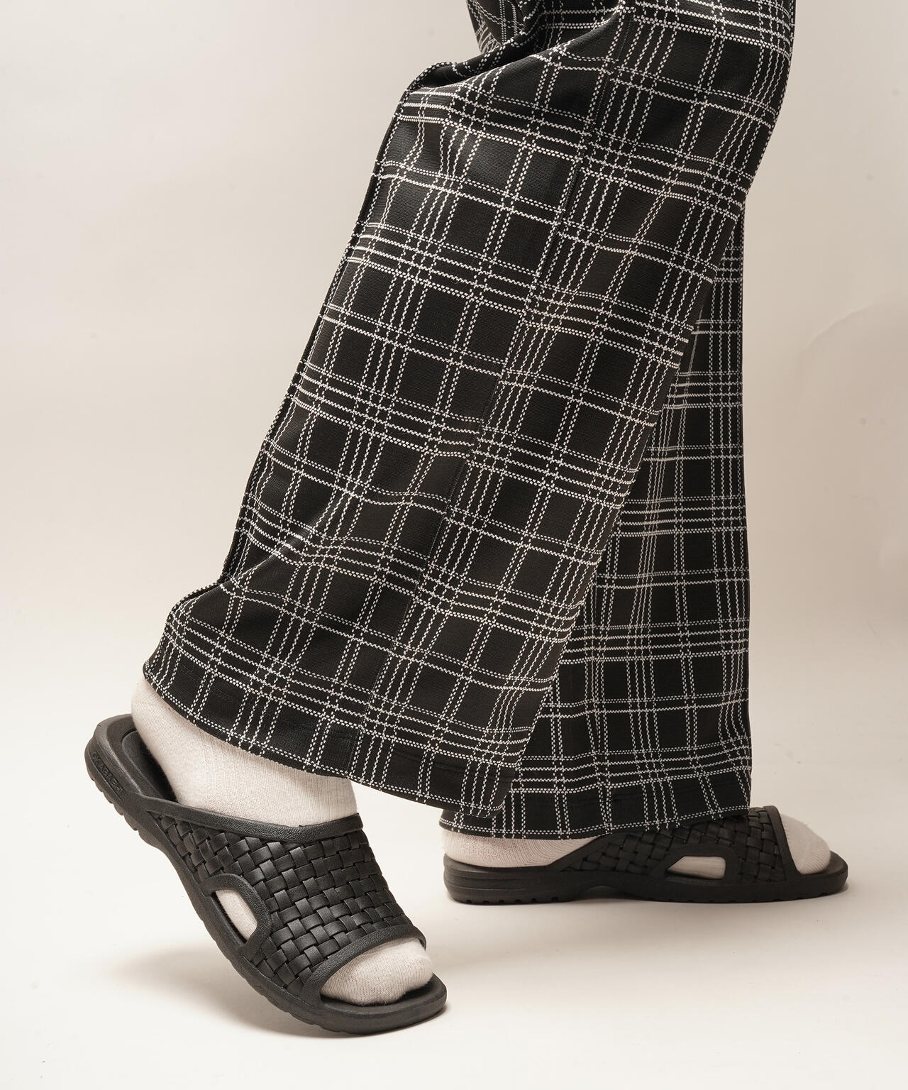 ウーブン調のデザインはボトムスのデザインやシーズンを問わず履けるデザインで、