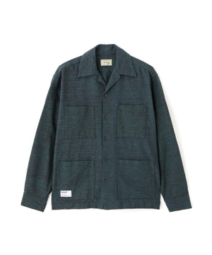 本作では、杢生地の豊かな表情を活かしながら、シャツジャケットとしても機能するディテールをプラス。