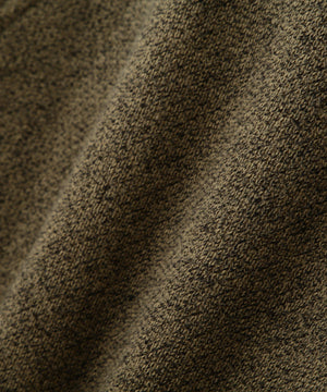 独特な風合いが魅力のスウェットが登場。表面の天竺を撚杢(よりもく)で編み上げることで、ごま塩のような奥行きのある表情を実現しました。