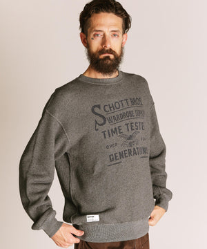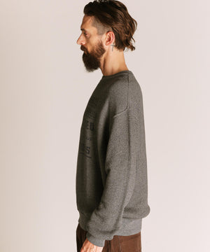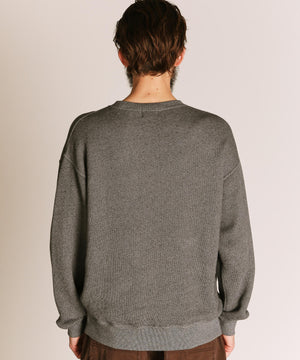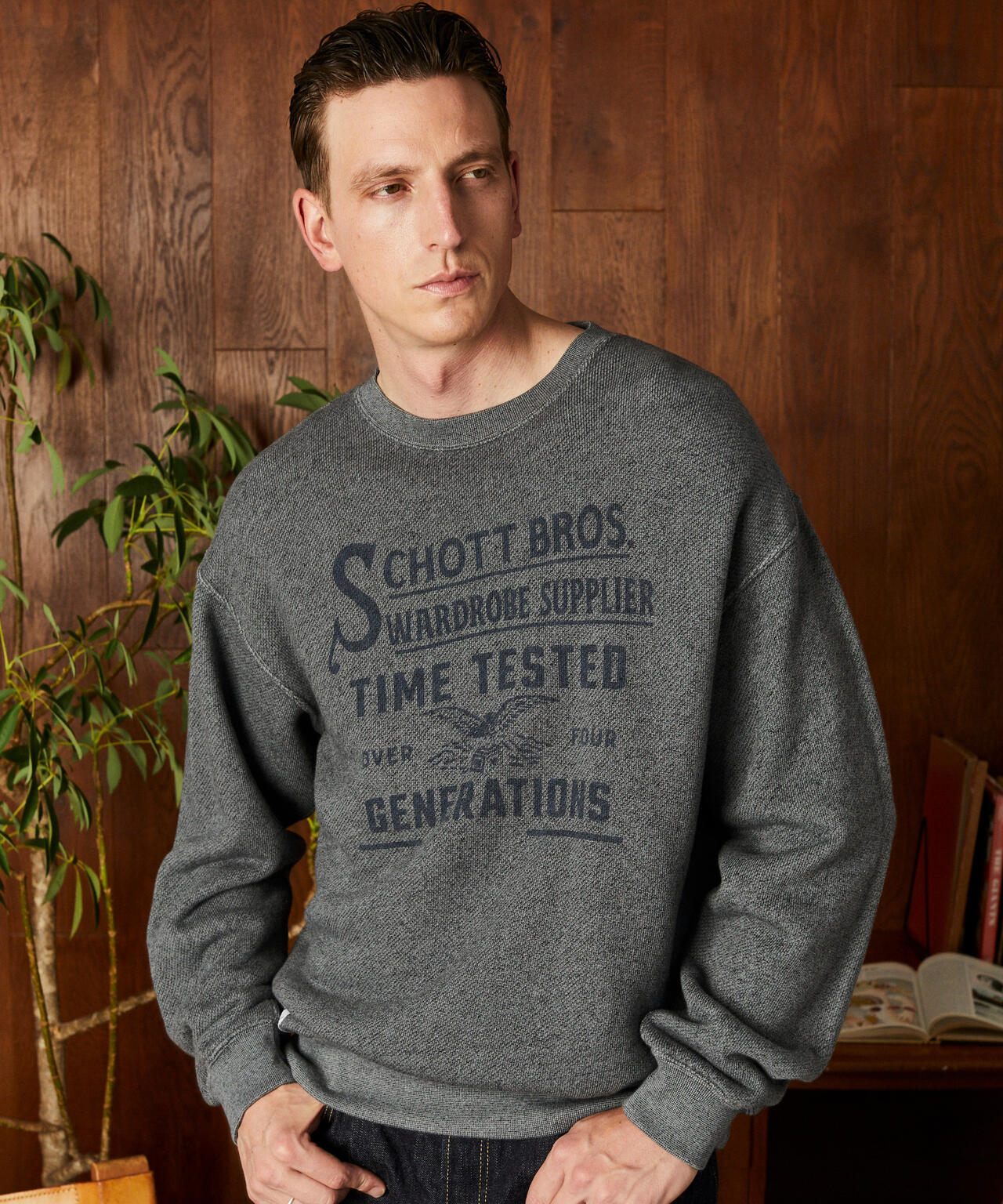 独特な風合いが魅力のスウェットが登場。表面の天竺を撚杢(よりもく)で編み上げることで、ごま塩のような奥行きのある表情を実現しました。