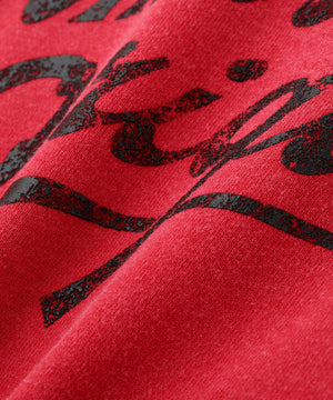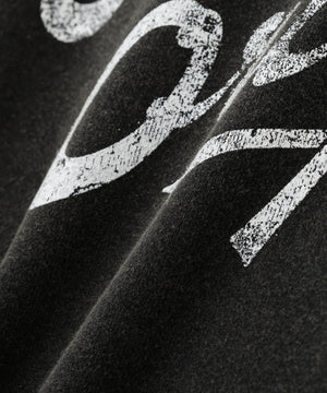 ヴィンテージ加工を施したボディと、古着のような風合いを持つプリントが融合し、まるで長年着込んだかのような深みのある表情を演出。