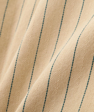 コットン100%のストライプヘリンボーン生地を採用し、程よいハリと味わい深い表情が特徴の一着。