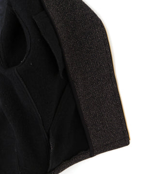 ウールとコットンの混紡糸をラッセル編み機で高密度に二重織りし、独特の質感と優れた防寒性を実現。