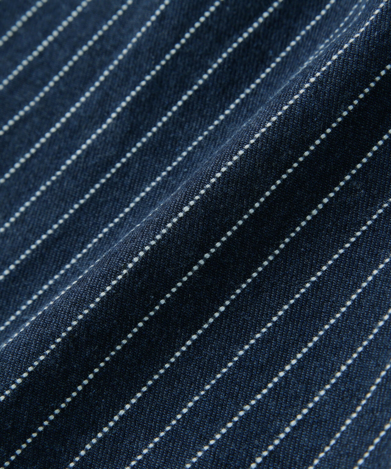 インディゴは少しあたりが出るような弱加工をしましたストライプは抜染などのプリントではなく織りで表現しています。