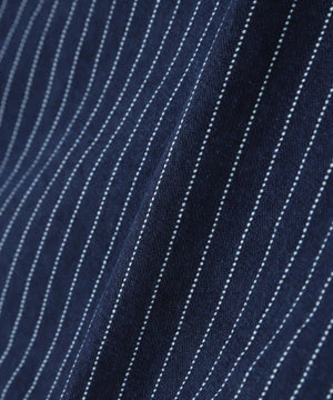 インディゴは少しあたりが出るような弱加工をしましたストライプは抜染などのプリントではなく織りで表現しています。