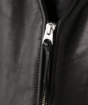 カウハイド素材のシンプルなバイカーズベスト。