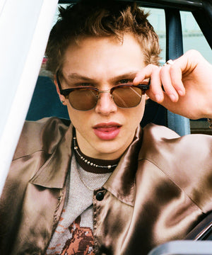 アセテートとチタンのコンビネーションフレーム。チタンを採用し、軽量でありながら抜群の耐久性を実現。錆びにくく、