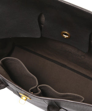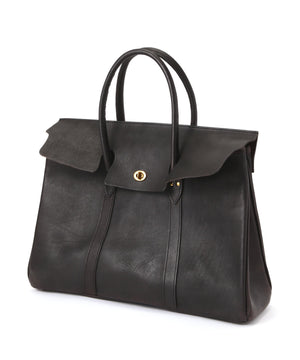 フラップは特注の真鍮製ヒネリで開閉できます。ライナーは堅牢度に優れた、キャンバス地を使用。利便性の高いA4対応サイズです。