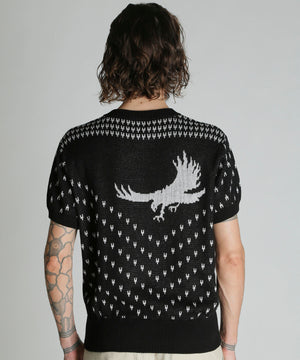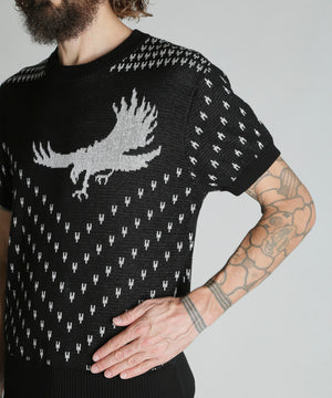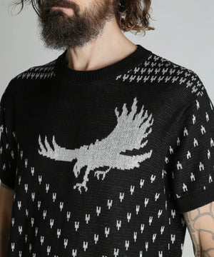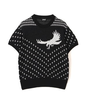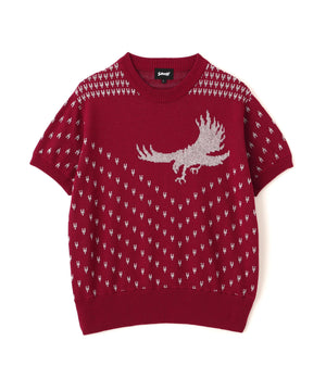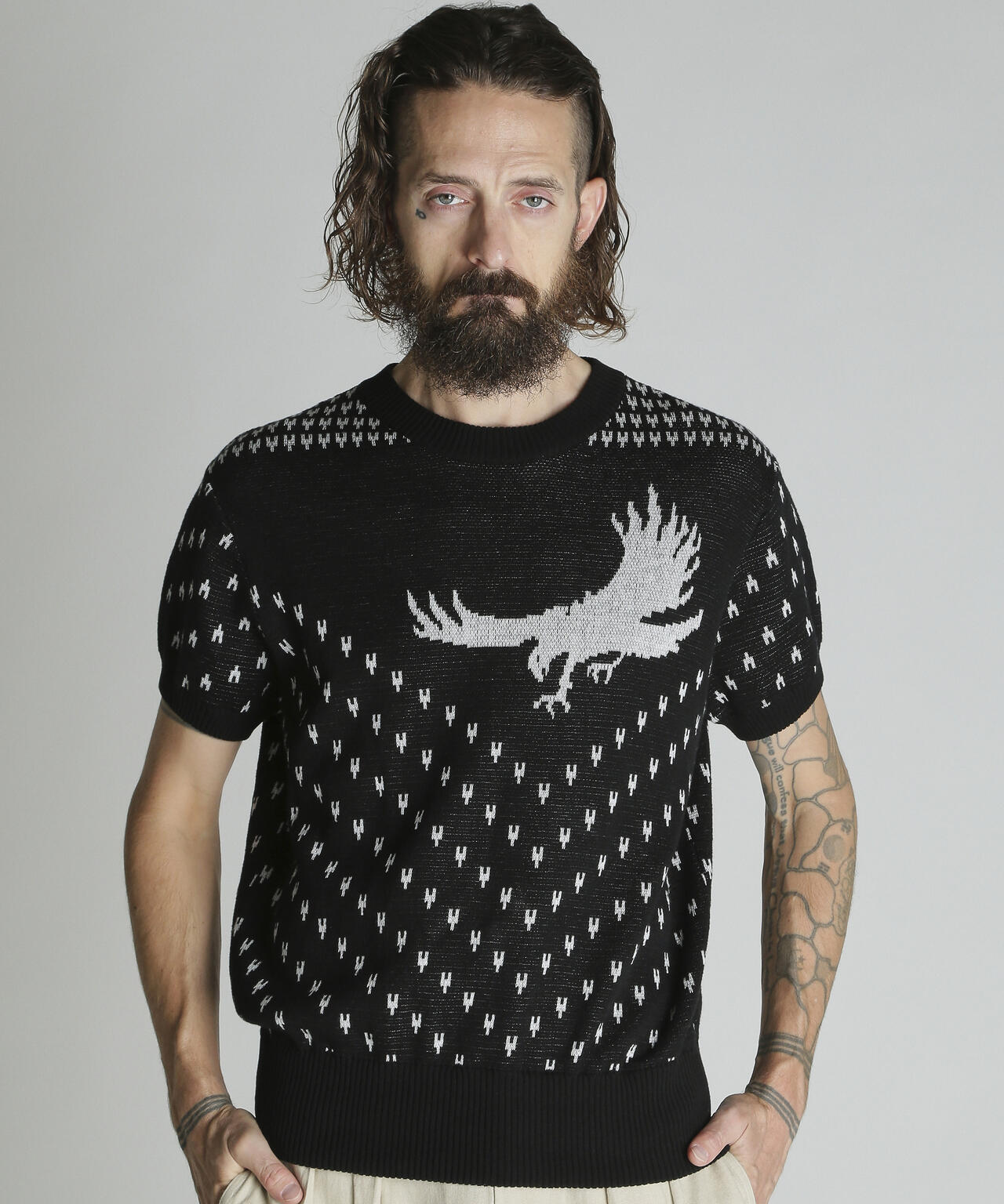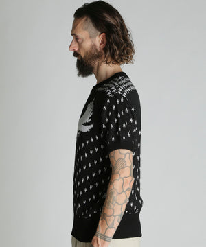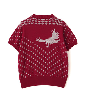 コットン100%のダブルジャガード編みのクルーセーター。