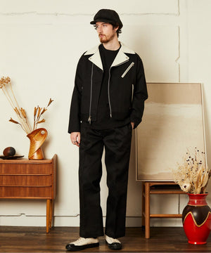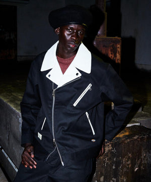 無骨なワークファブリックとライダースの象徴的なフォルムを掛け合わせることで、アメリカンヘリテージを感じさせる一着に仕上げています。