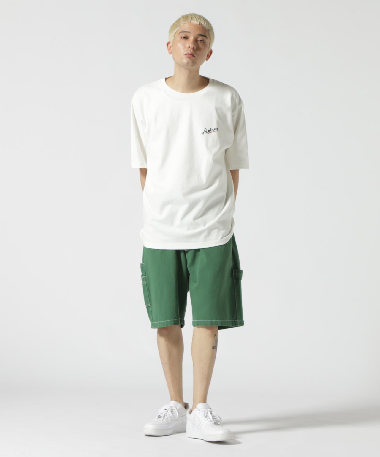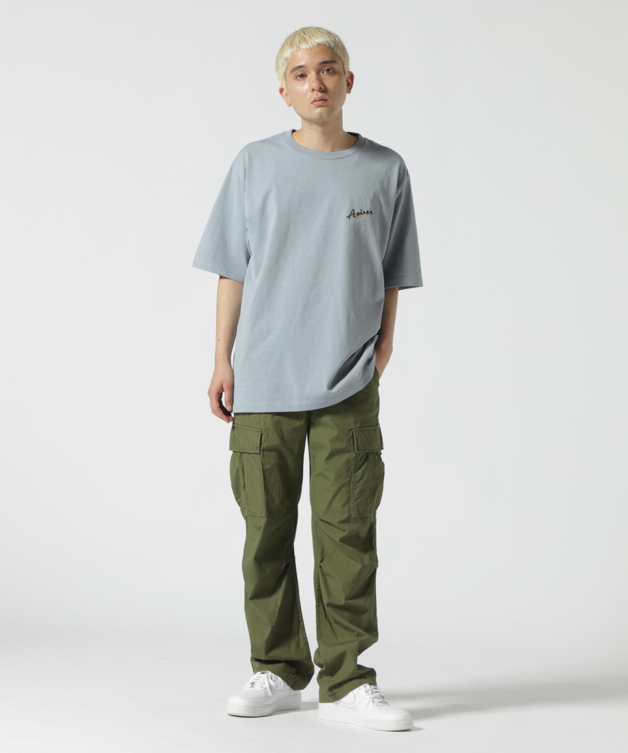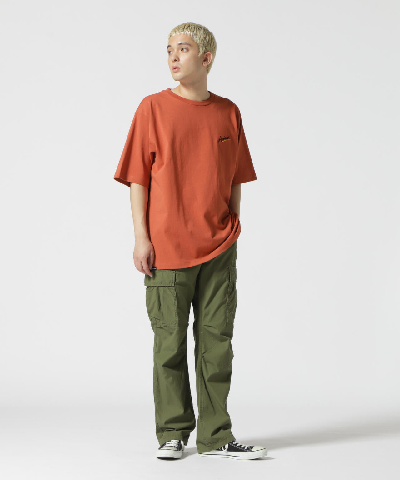 アメカジ感あふれるグラフィックを活かすようカーゴパンツやワンウォッシュ程度のデニムに合わせるのがオススメ。