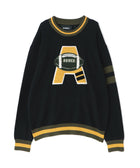 フロントのサガラ刺繍ワッペンとリブのラインがアクセントになったクルーニット。
