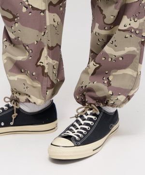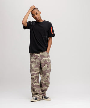 <商品詳細>ワイドシルエットのファティーグパンツをタウンユースに落とし込んだミリタリーカーゴパンツM-65ファティーグパンツをデザインソースに、ルーズに履いてコーディネートの抜け感を作ってくれるワイドなミリタリーパンツベーシックなブラック、タン、オリーブとアクセントになってくれるカモフラージュウエストのサイドでサイズ調節出来るようになっていたり、裾が絞れるようになっていたりと、幅広い体型の方に対応ミリタリーをルーツに持つAVIREXだからこその細部への拘りも魅力