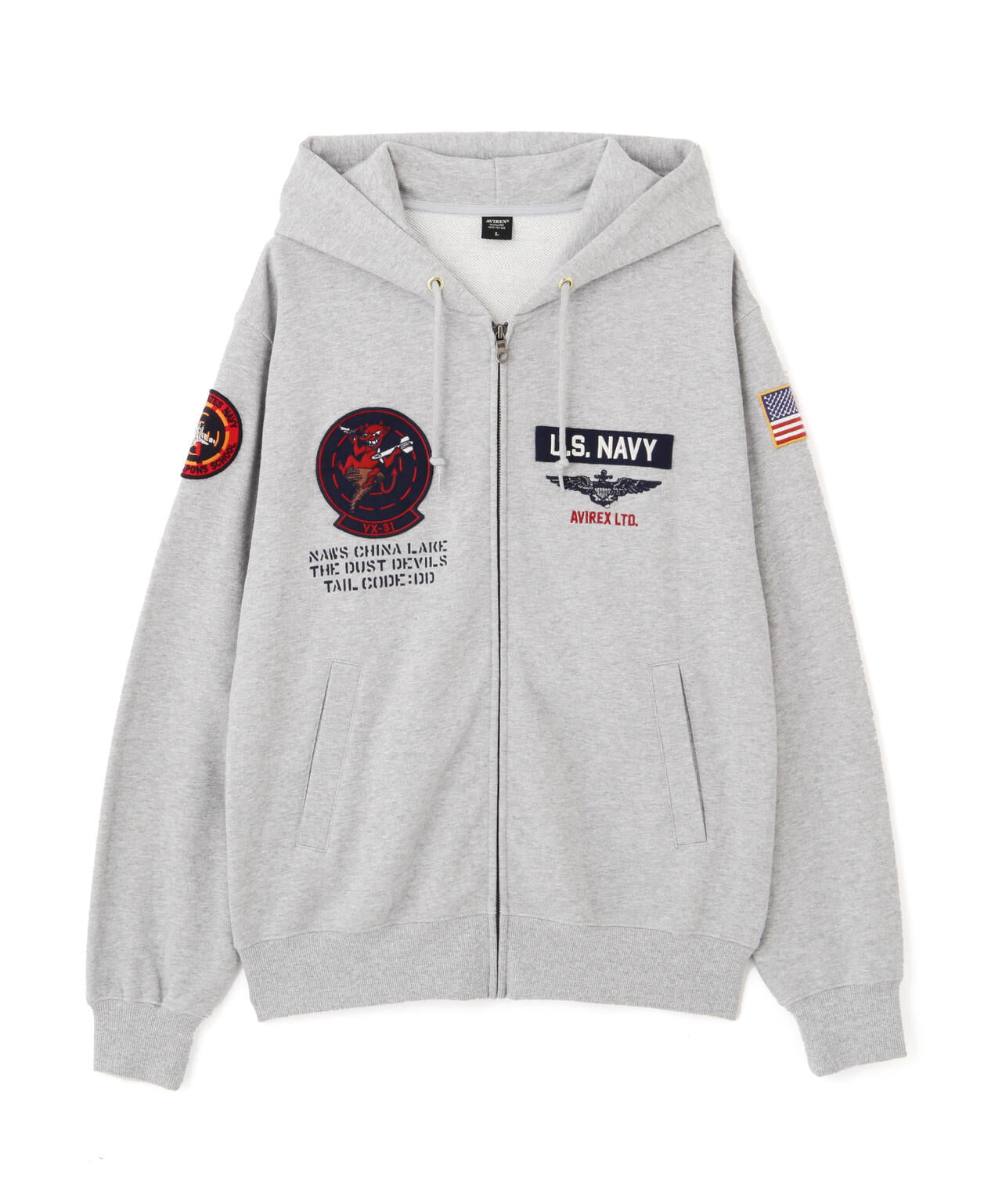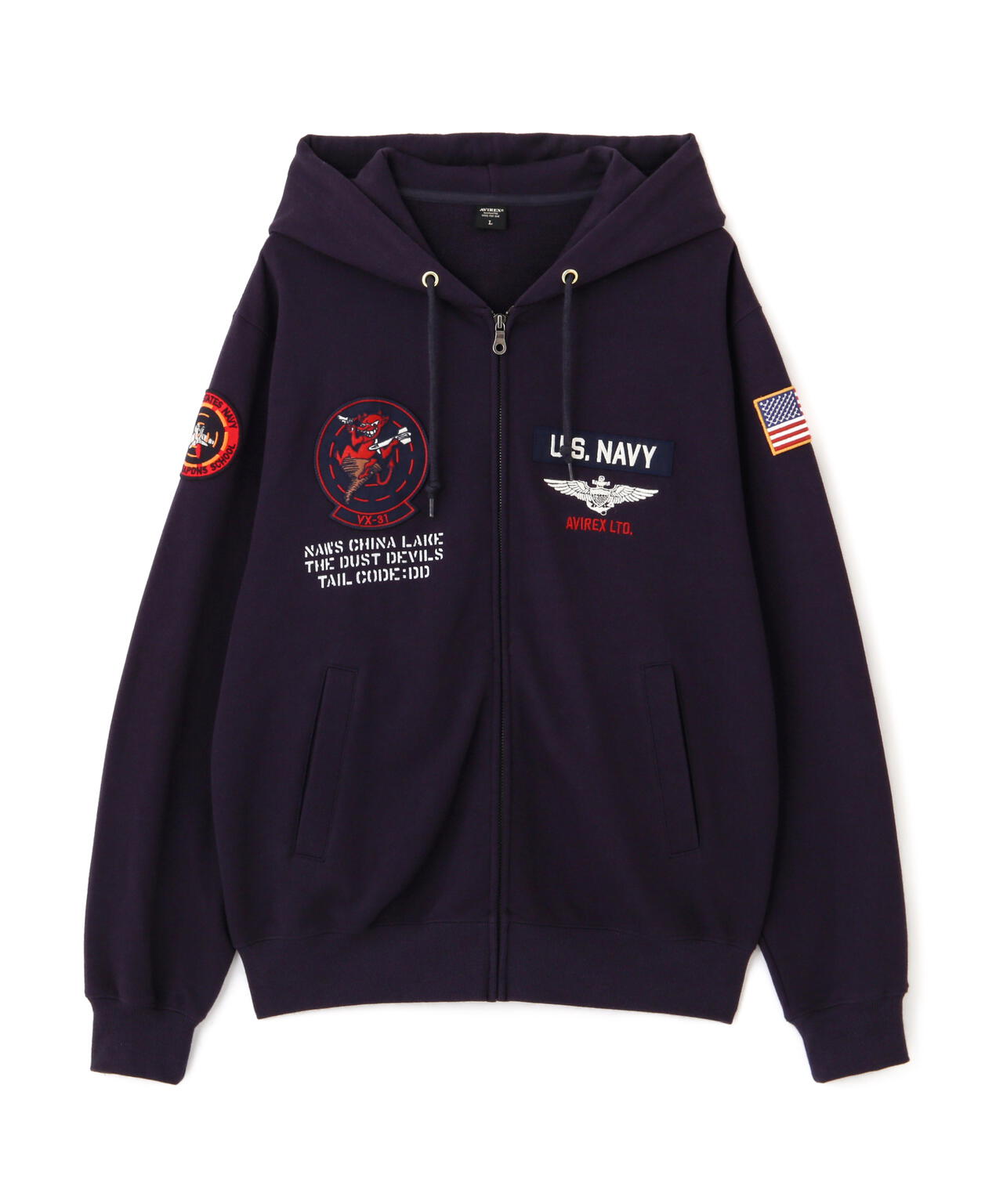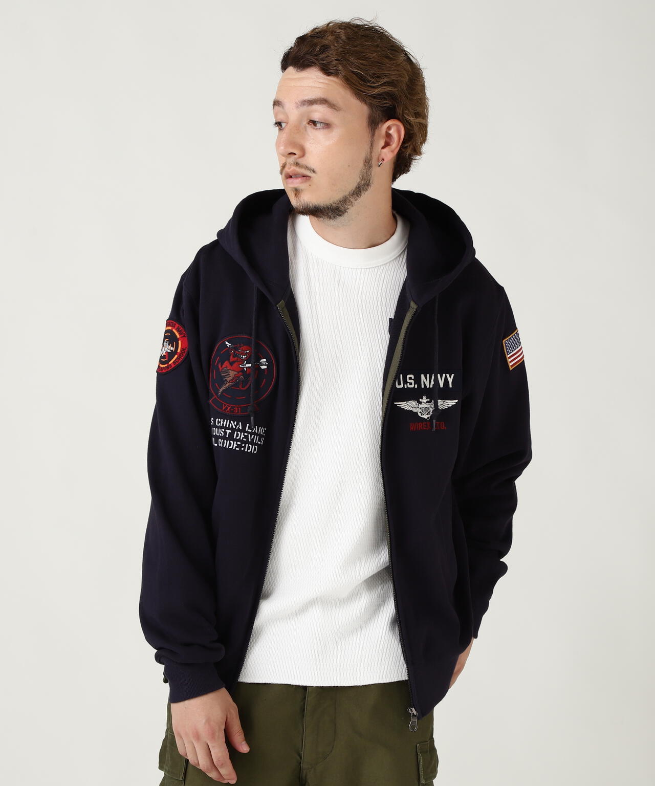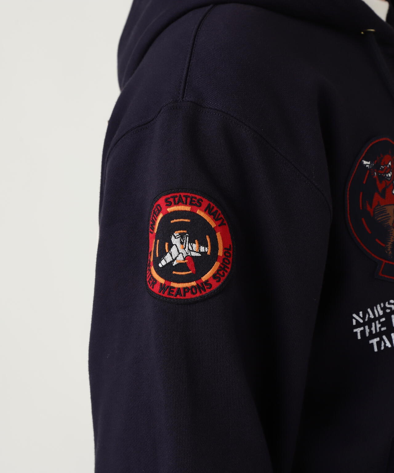 ・映画トップガンの劇中でマーベリックが着用しているフライトジャケットCWUジャケットに施されているVX-31 通称ダストデヴィルスの部隊をモチーフに構成したグラフィックワークのパッチ使いが特徴
