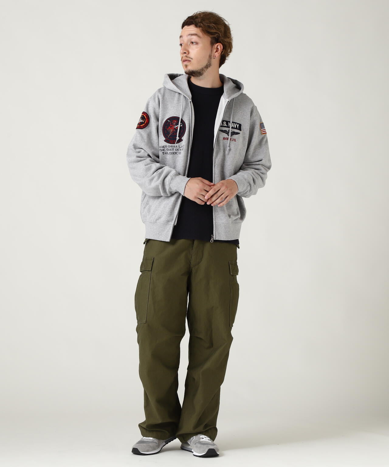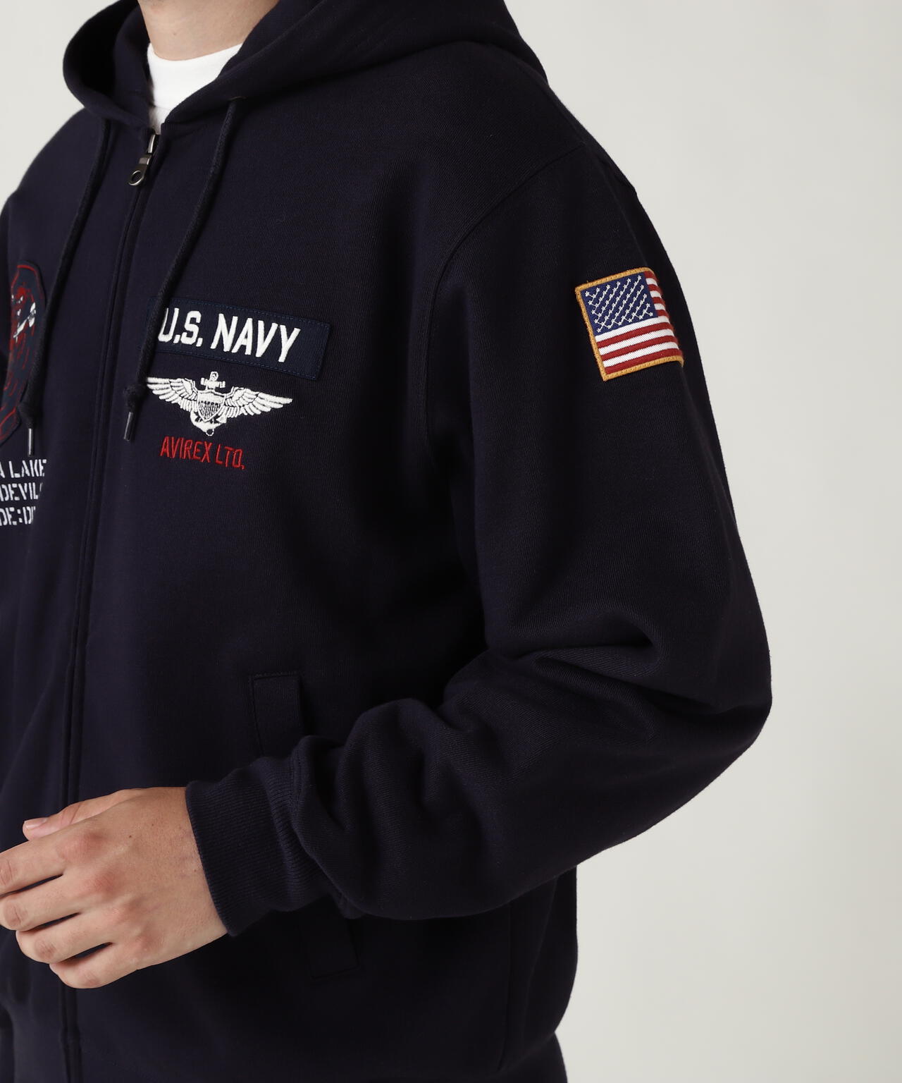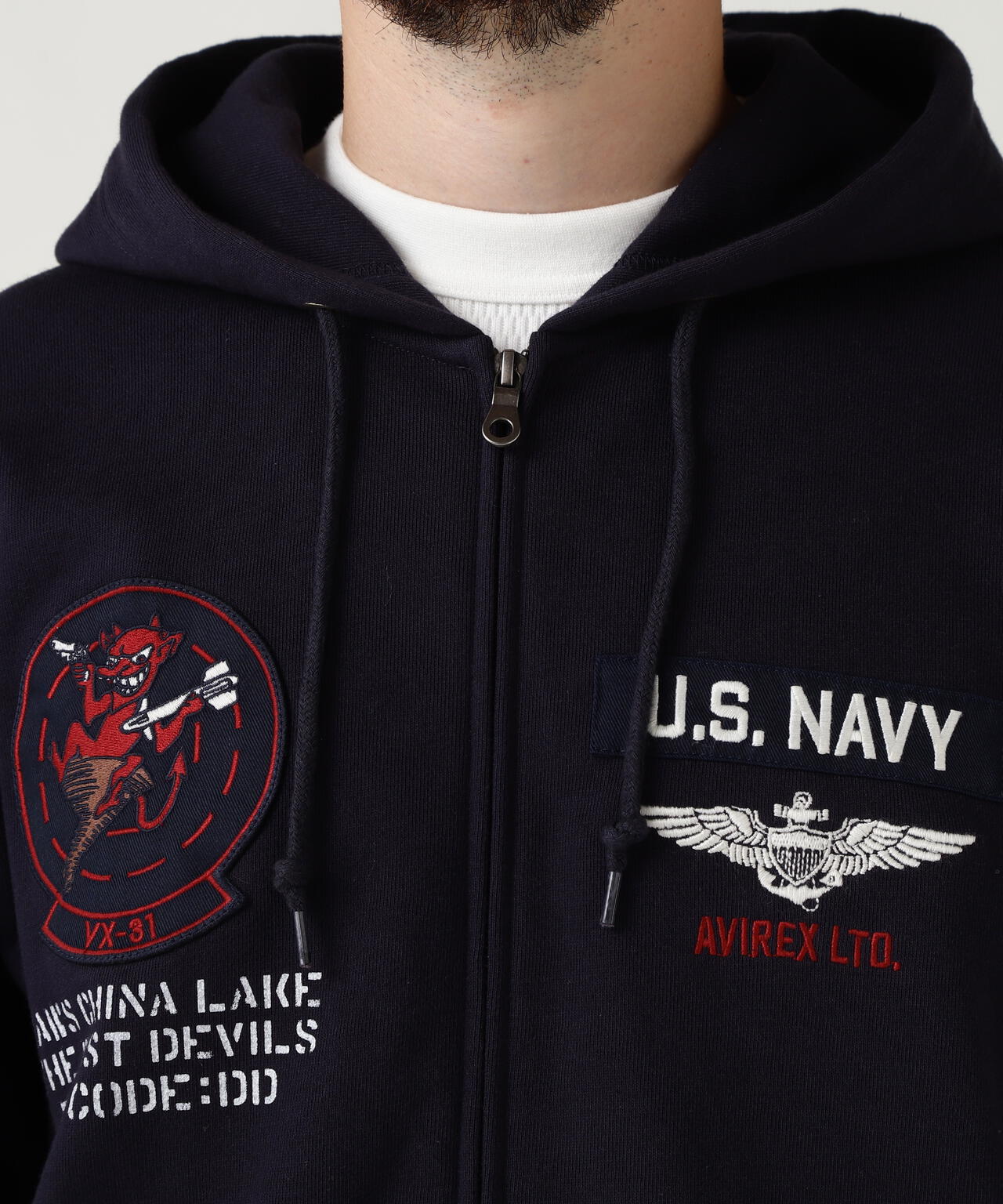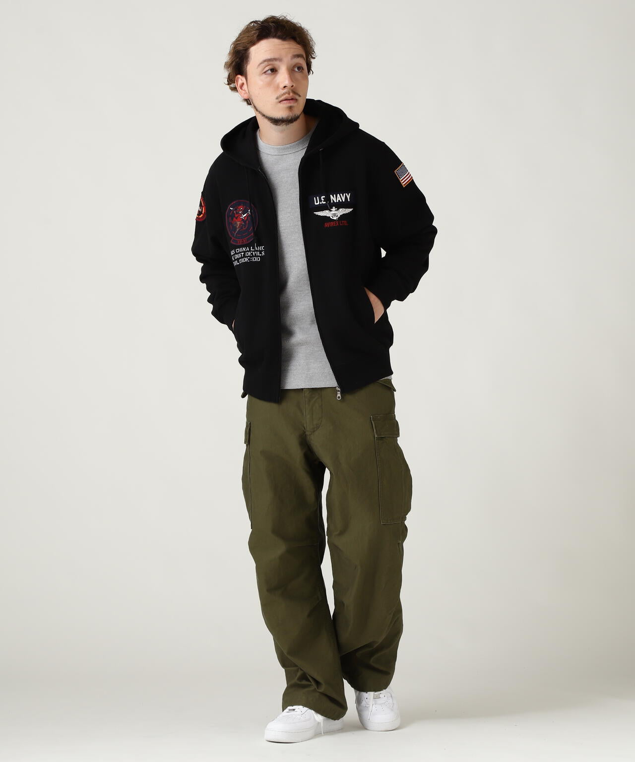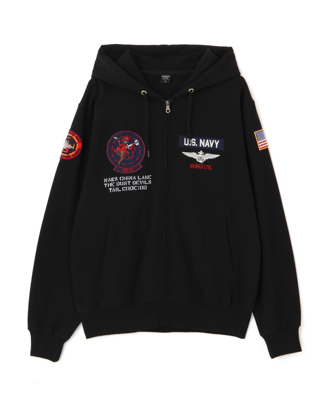 ・映画トップガンの劇中でマーベリックが着用しているフライトジャケットCWUジャケットに施されているVX-31 通称ダストデヴィルスの部隊をモチーフに構成したグラフィックワークのパッチ使いが特徴