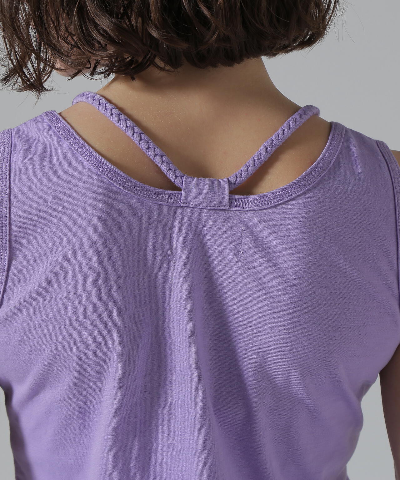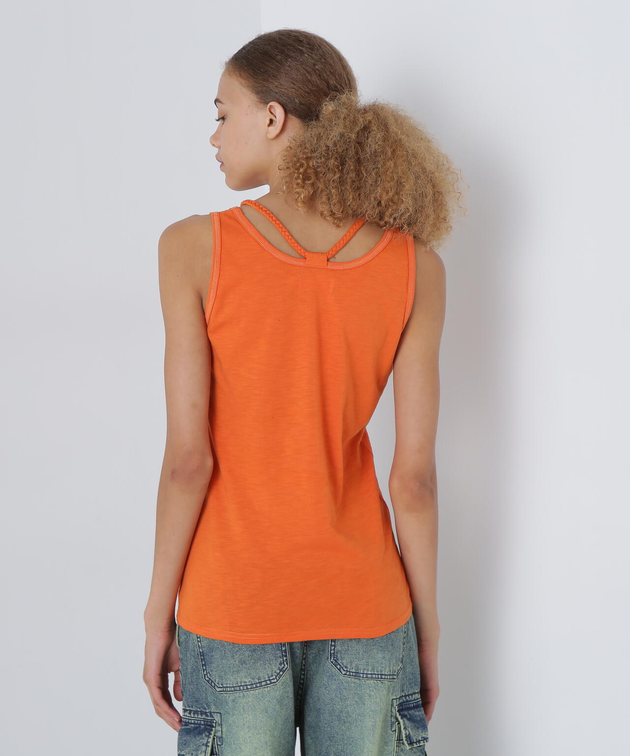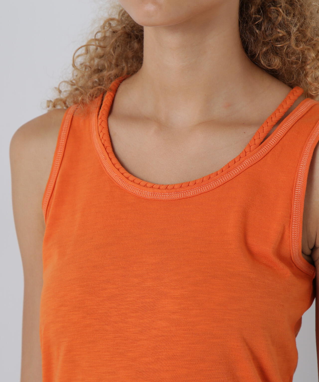 三つ編みの肩紐がポイントになるタンクトップです。