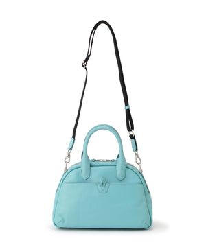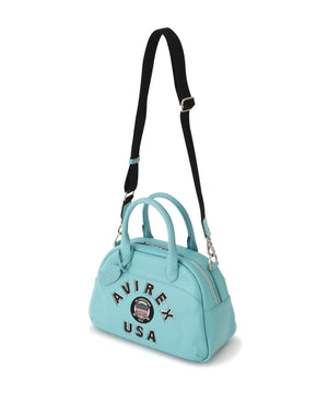 ビンテージ調の配色で統一感のあるワッペンと、レザージャケットよりインスパイアされたバーシティーロゴが印象的なミニボストンバッグ