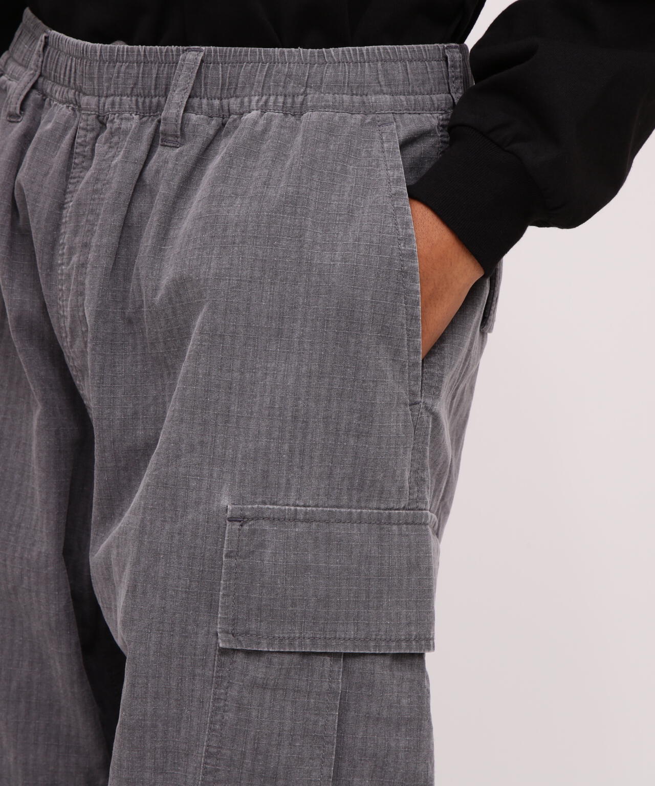 ・加工感のある顔料染めのリップストップ生地を採用