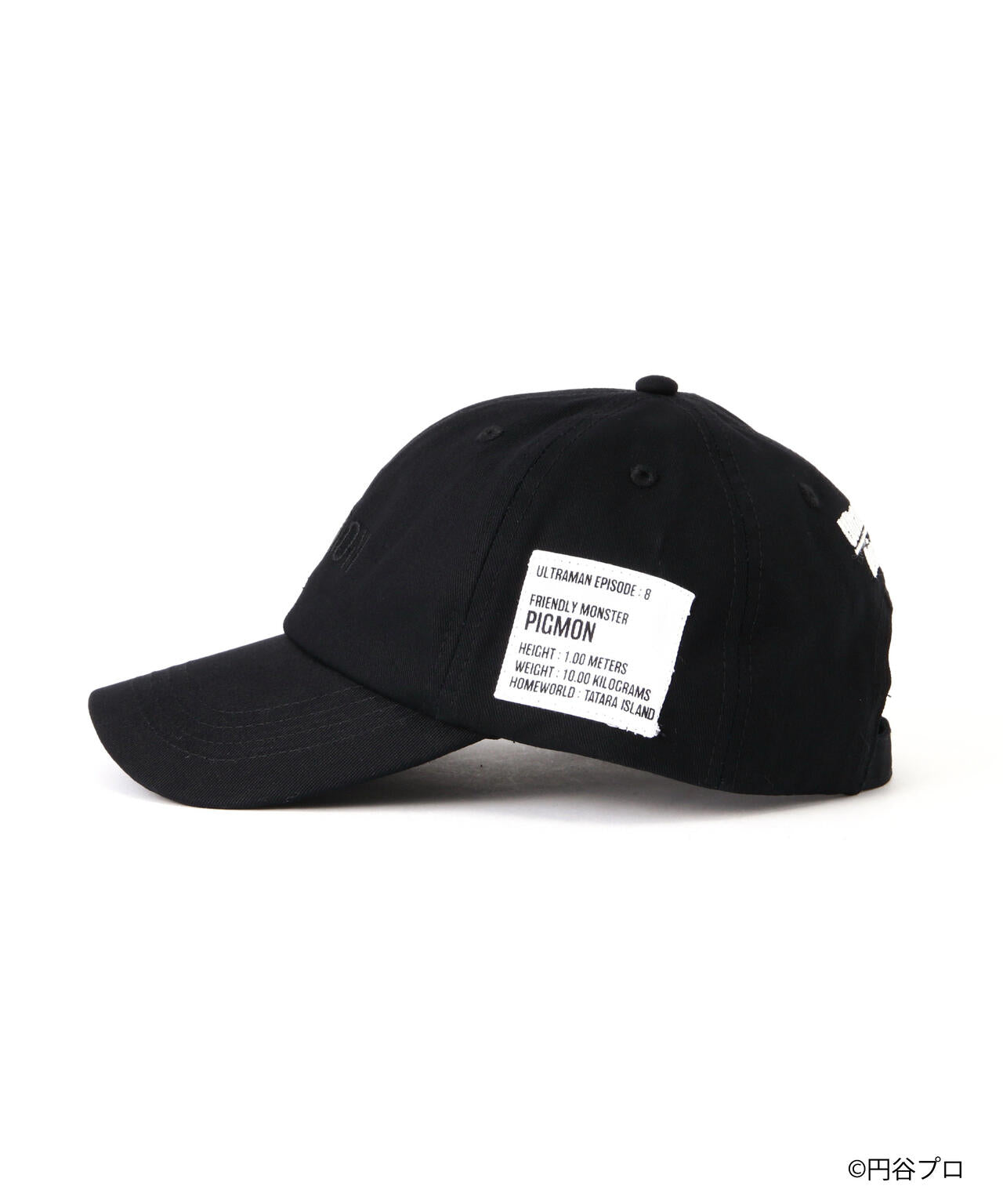 ・バックは刺繍でコラボオリジナルロゴを、左右にはそれぞれパッチに怪獣のスペックをプリント、刺繍でピグモンのシルエットを入れたスペシャルなキャップ
