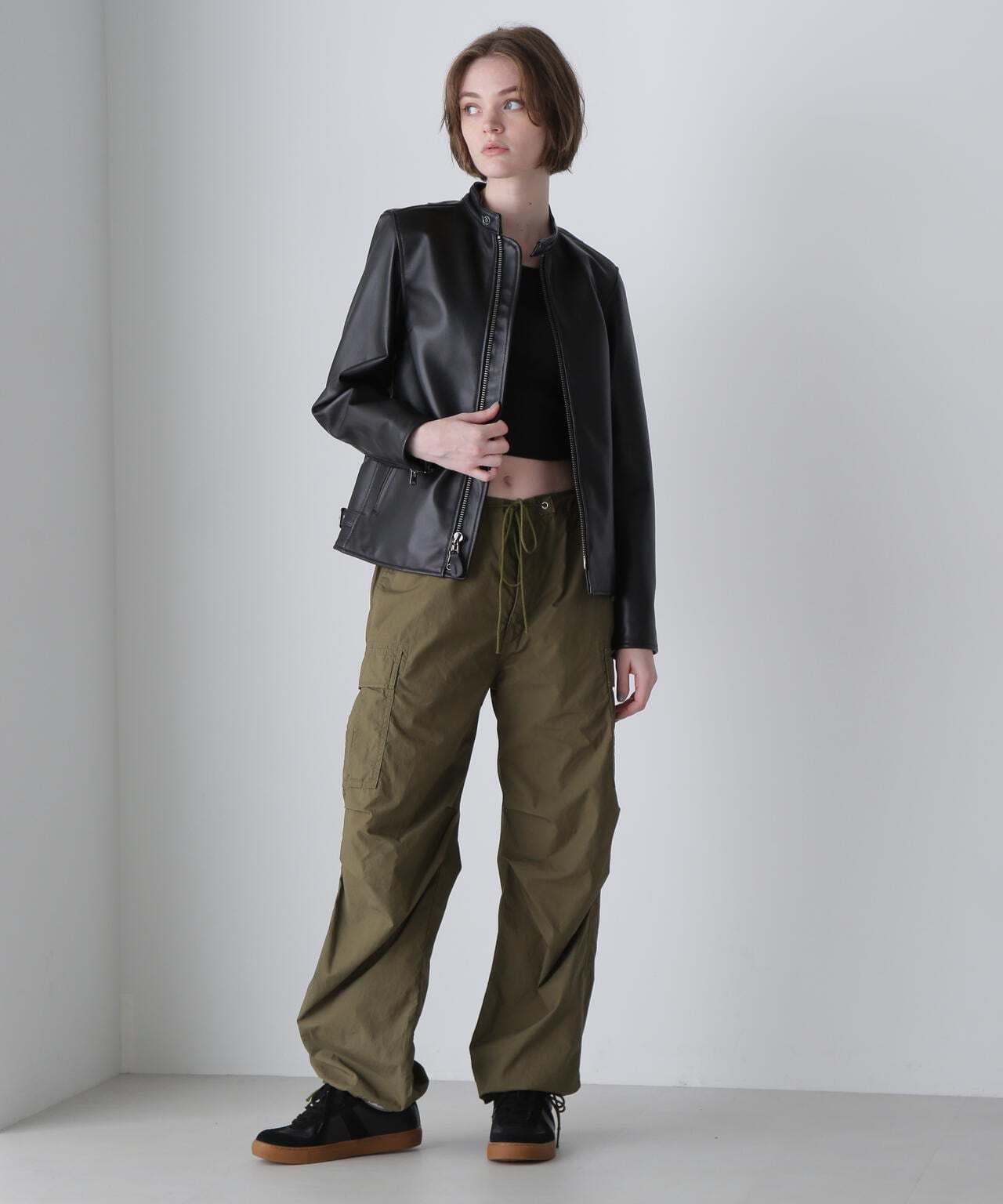 おすすめスタイリングスッキリとしたデザインのレザージャケット。カーゴパンツやデニムでカジュアルなスタイリングから、ワンピースやスカートを合わせた女性らしいコーディネートまで、幅広く着まわして頂けます。