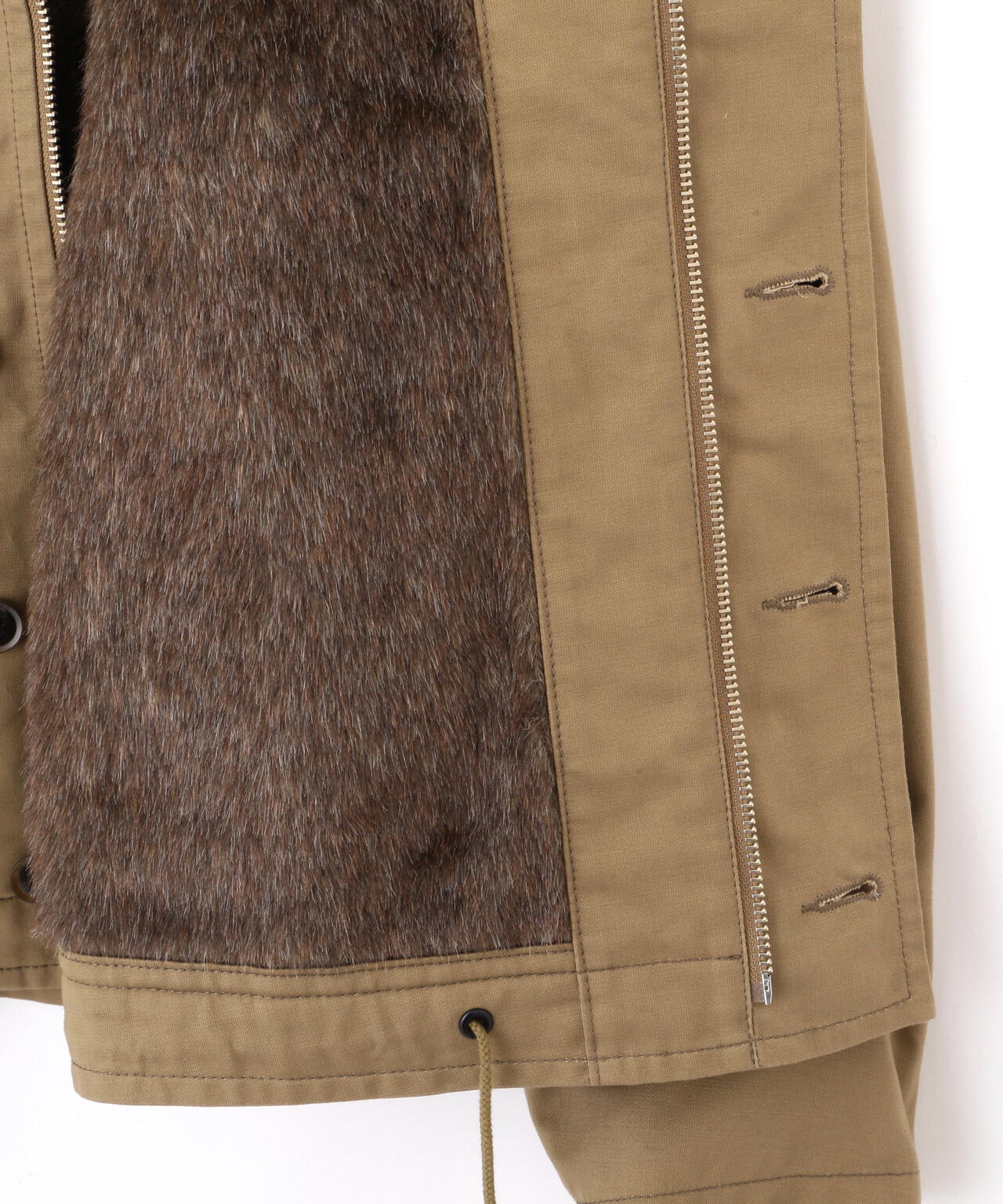 (表生地)コットン 100%(身頃部分)アクリル 62% 毛 23% ポリエステル 13% ポリウレタン 2%(袖部分)ポリエステル 100%(衿)羊革(リブ部分)ポリエステル 100%(中わた)アクリル 100%(ししゅう部分)ポリエステル 100%(皮革部分)牛革