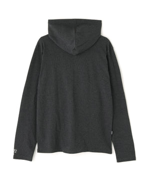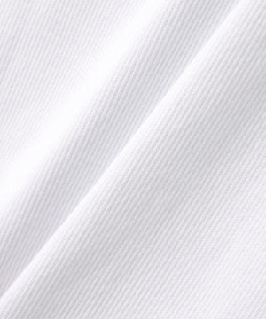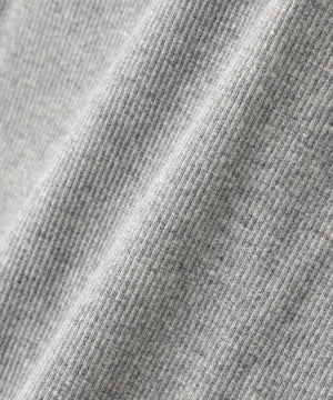 テンションの強いライクラ糸を入れたリブ編み素材を採用。しっかりした風合いが特徴でヘビーローテーションでの着用にも耐えうる耐久性を兼ね備えている。