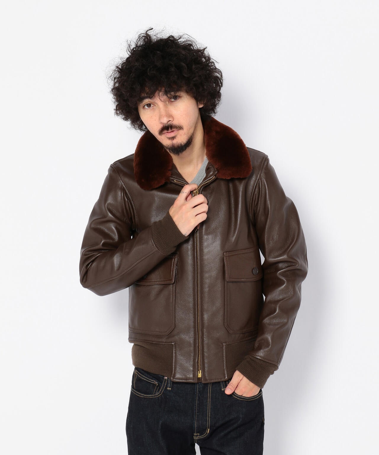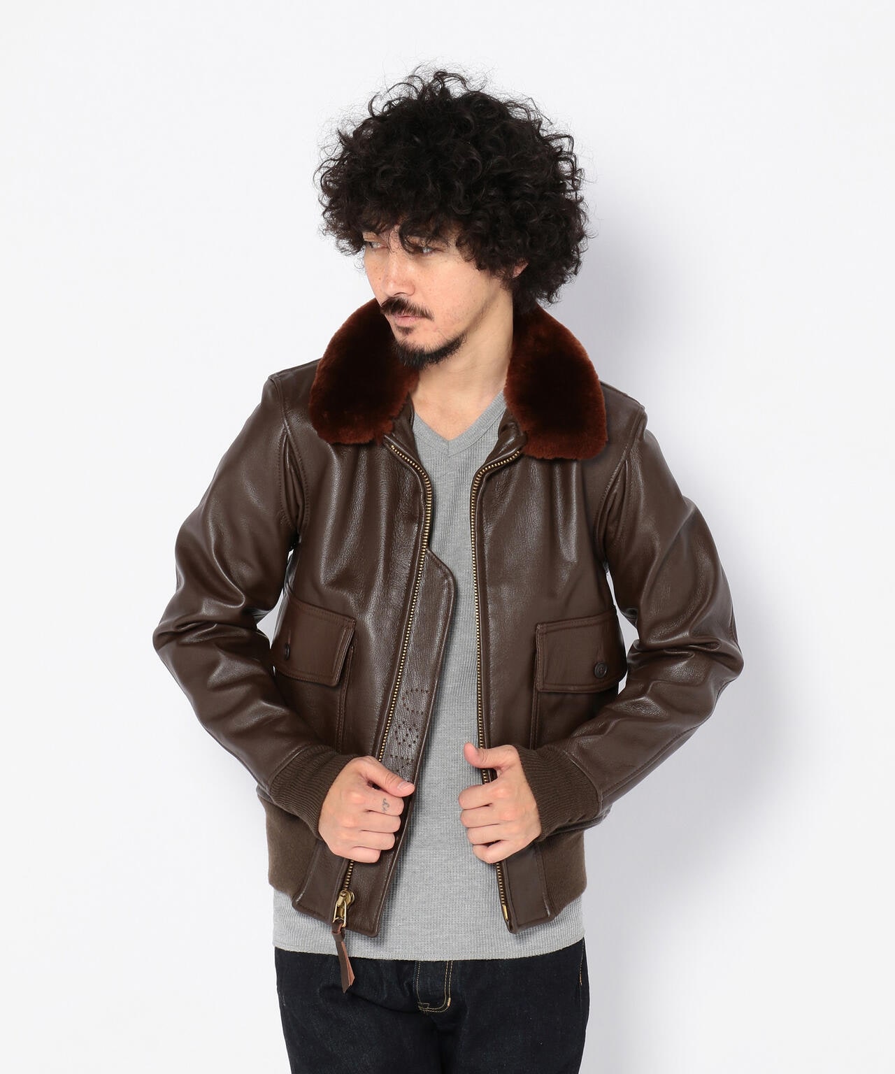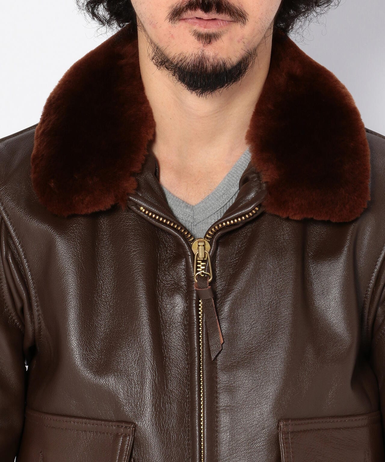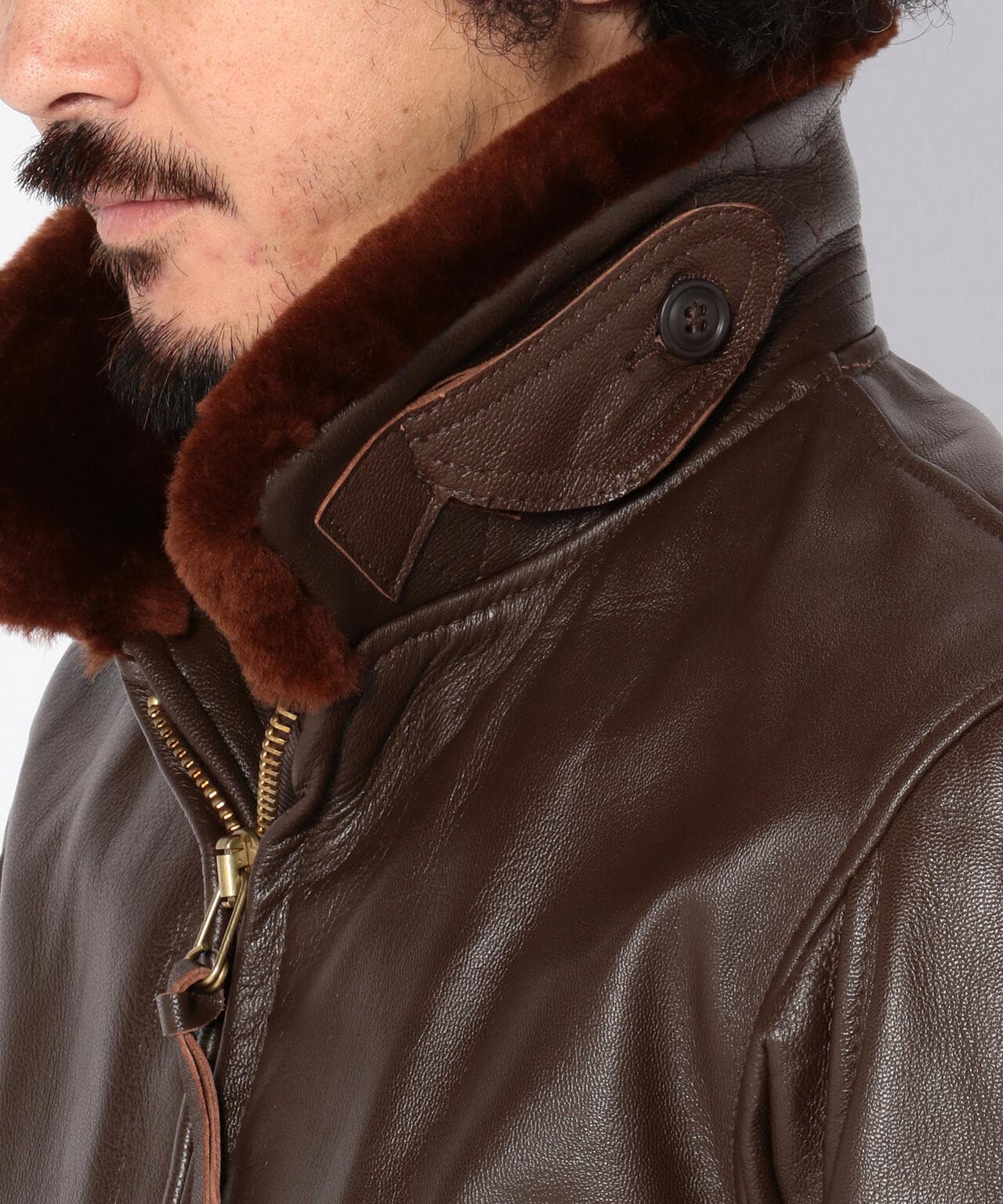 衿にはムートンファーを使用し、ボディはオリジナル同様にゴートスキン(ヤギ革)を使用しておりタイトなフィット感は着込むほどに体になじみます。