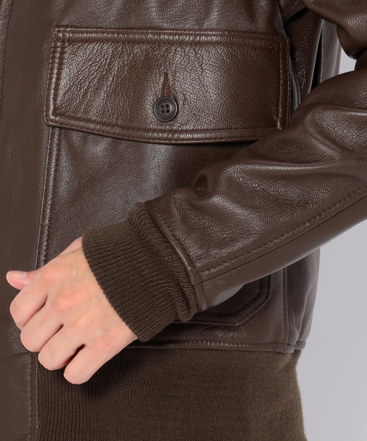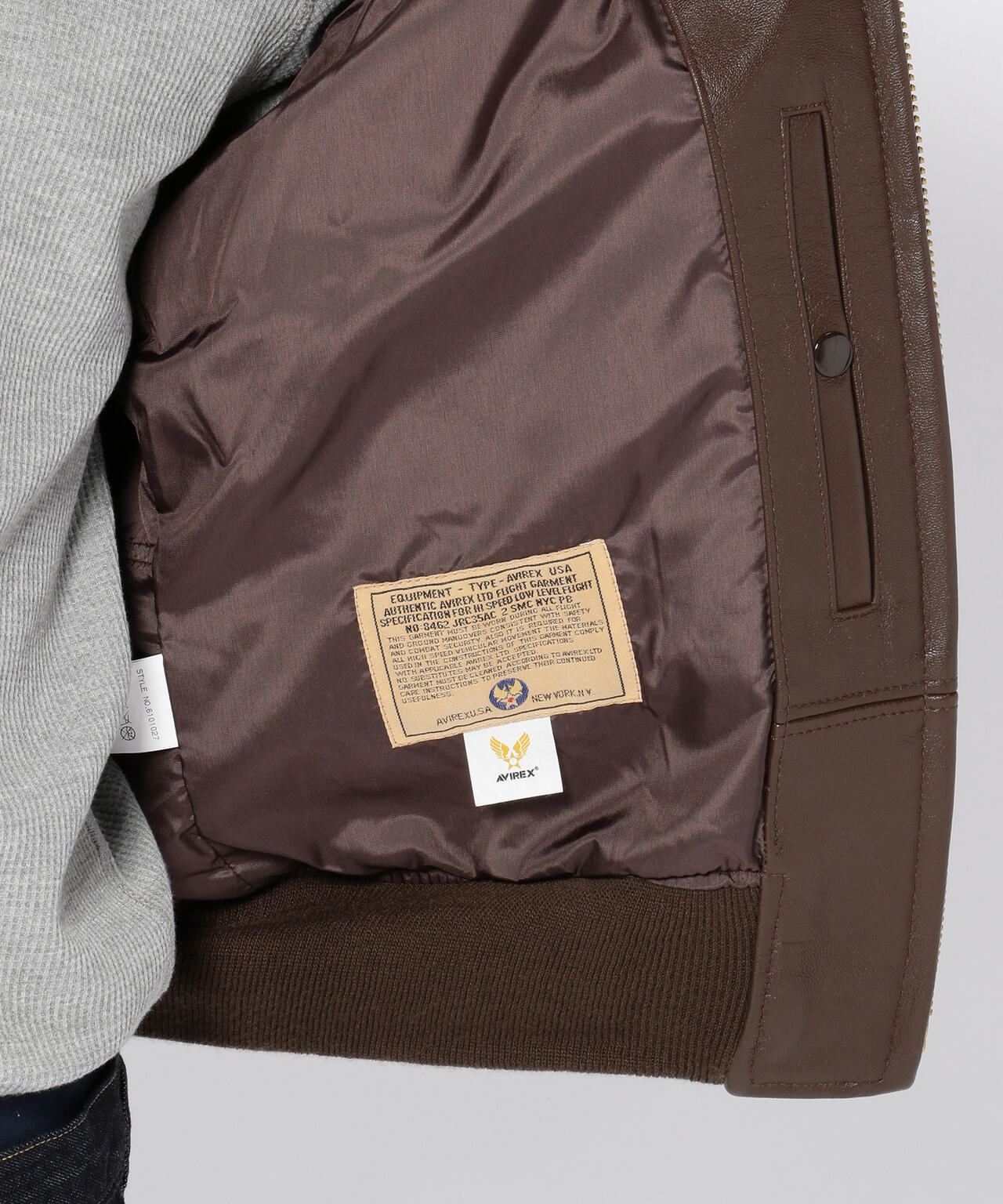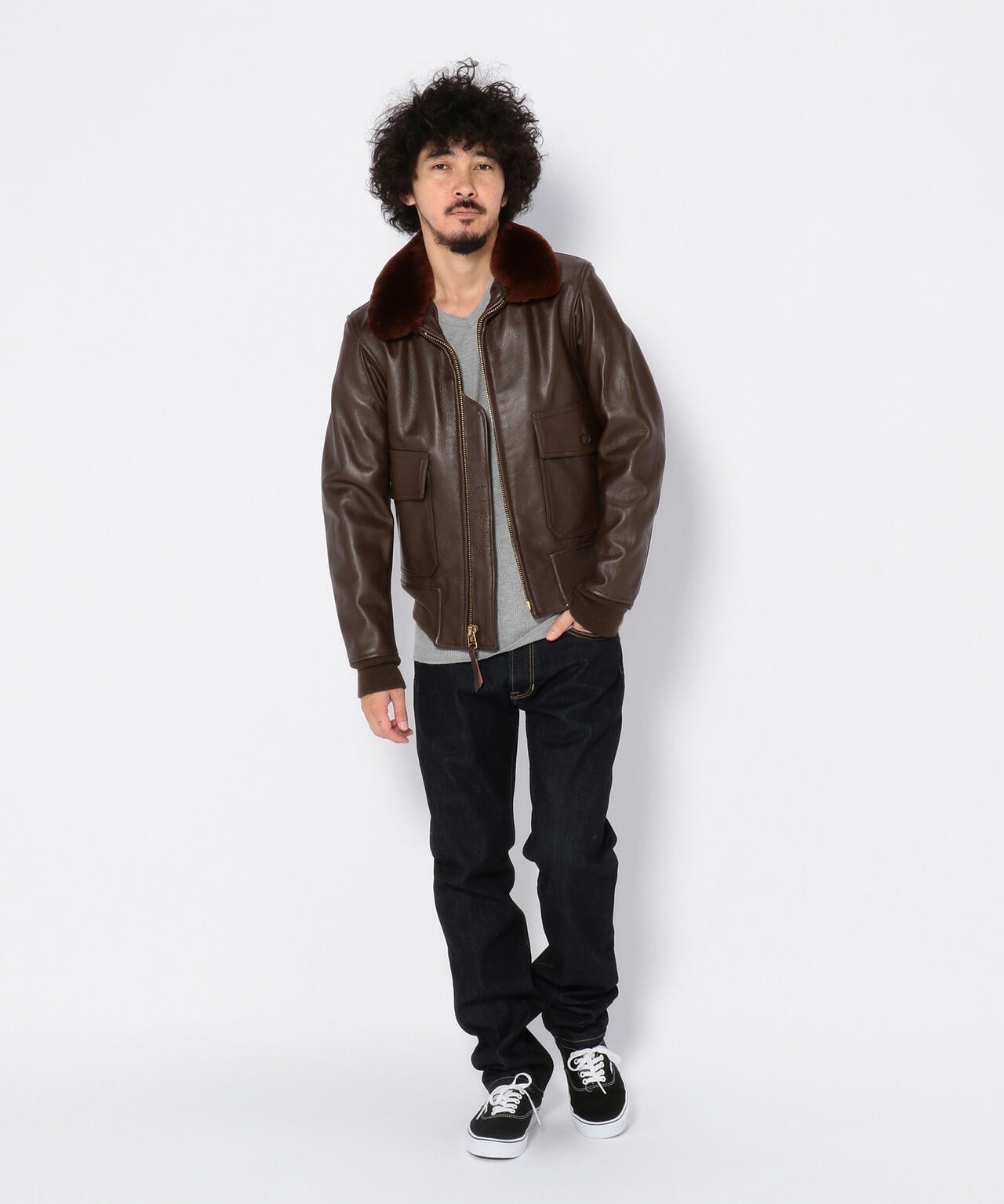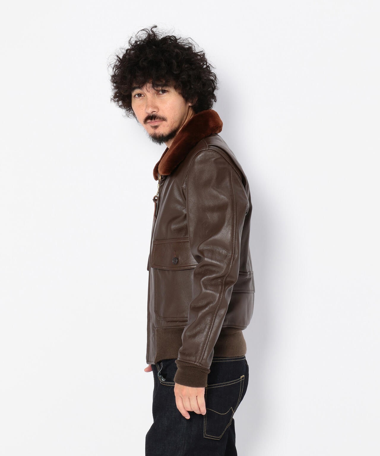 衿にはムートンファーを使用し、ボディはオリジナル同様にゴートスキン(ヤギ革)を使用しておりタイトなフィット感は着込むほどに体になじみます。