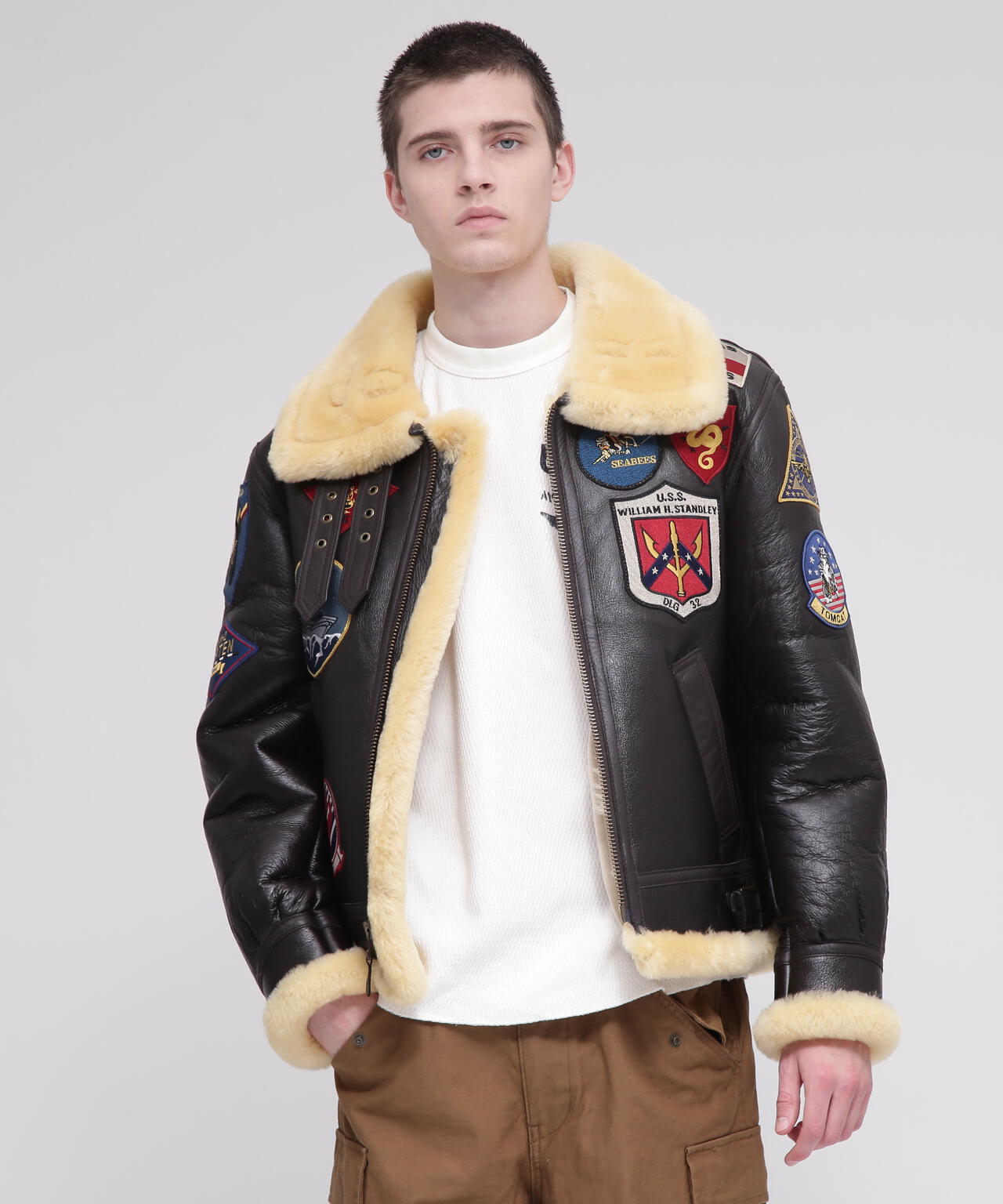 B-3は本来アメリカ陸軍航空軍(United States Army Air Forces/ユナイテッド ステイツ アーミー エアフォース)で採用されていたフライトジャケットであり本来は「U.S.NAVY/U.S.ネイビー」のTOP GUNパッチをつけるべきモデルではないが、実際には存在しない双方のスタイルをAVIREXのフィルターを通し実現させた唯一無二のモデルになている。