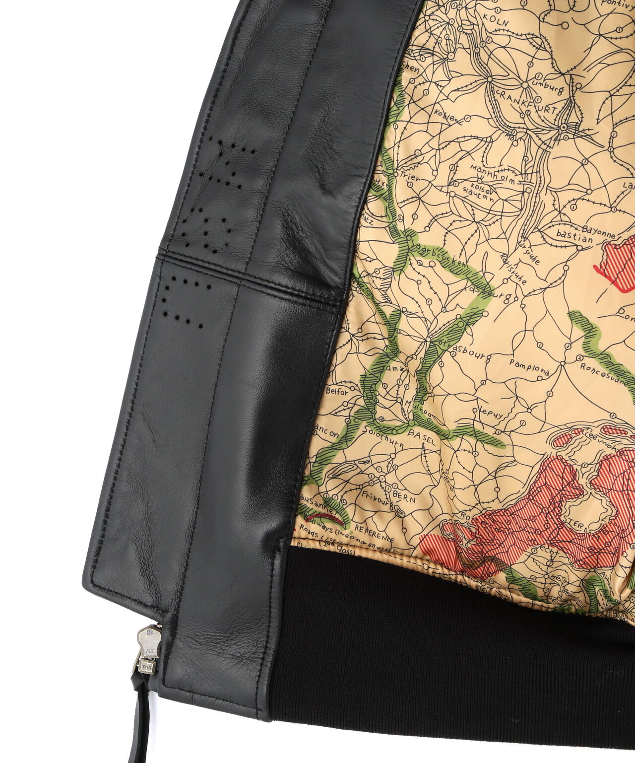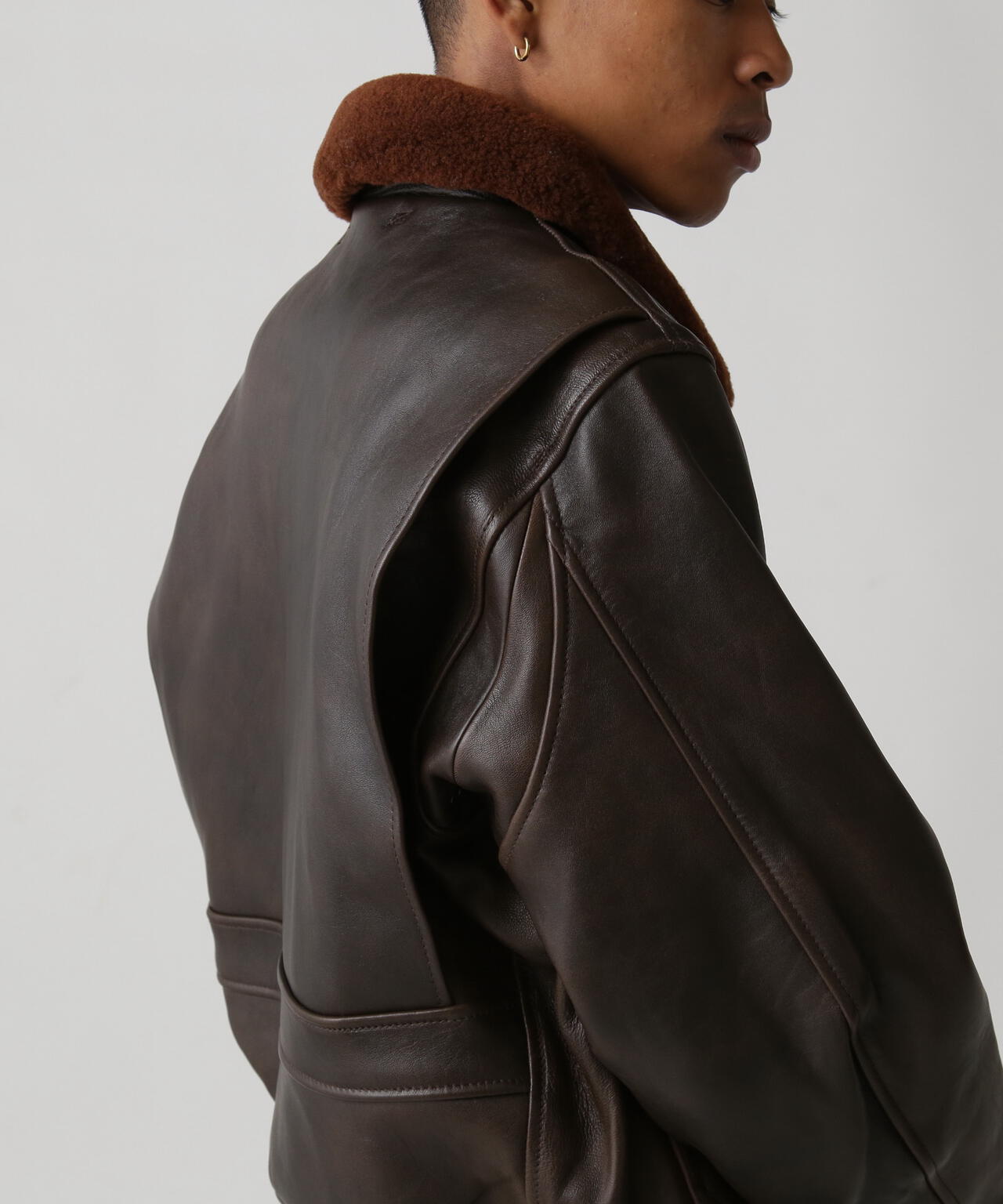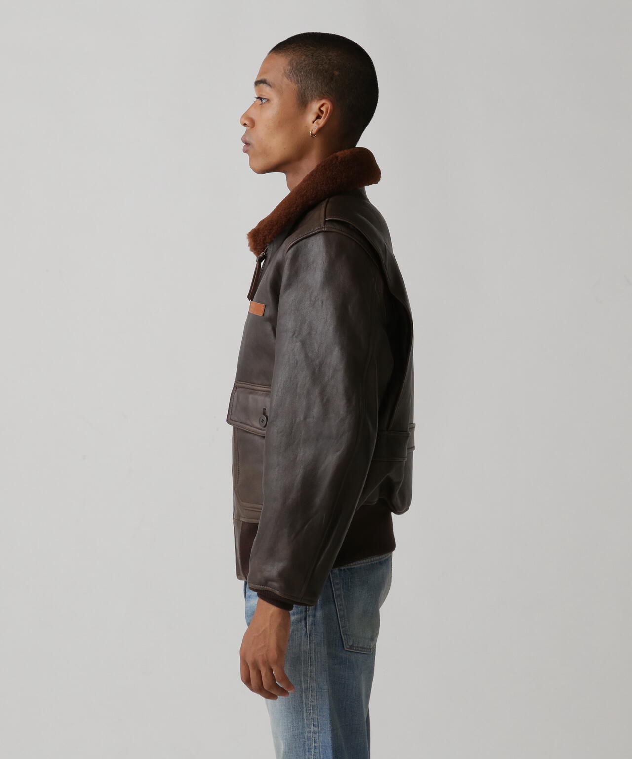 商品詳細・少しゆとりを持たせたボックスシルエット・フロント左胸にブランドパッチを配値・襟はムートンを使用・AVIREXが90年代に作成していたアンティークラムを使用し、羊革ながらにしっかりした厚みのある存在感を味わえる・ハンドウォーマーポケットを採用・裏地は地図柄を配したデザインが特徴的