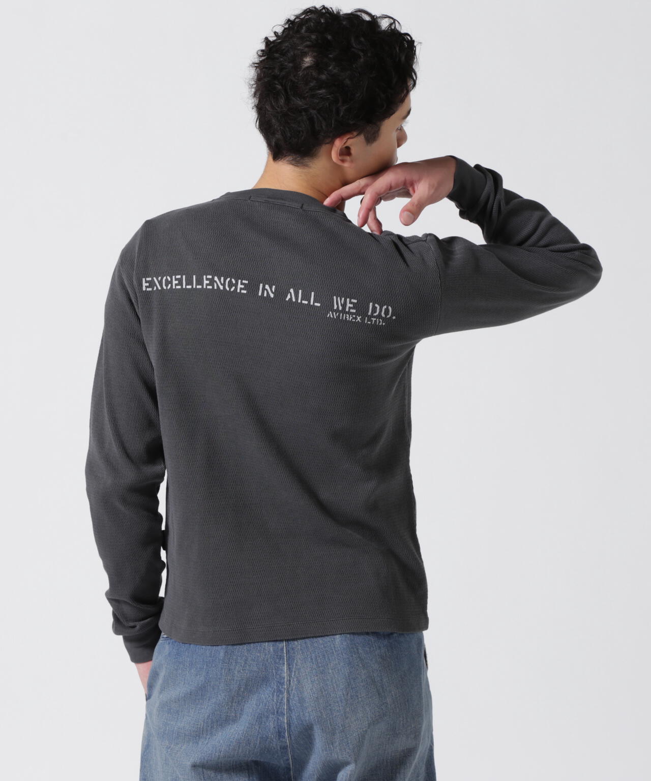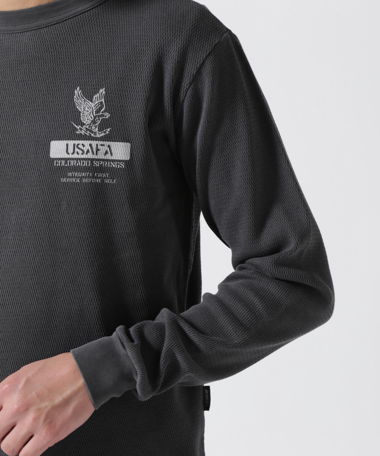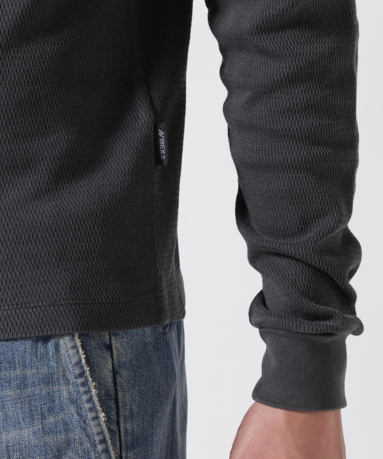 ・AVIREXらしい長袖ハニカムワッフルTシャツ