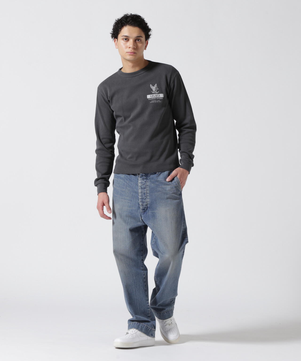 FADE WASH HONEYCOMB WAFFLE T-SHIRT / フェイドウォッシュ ハニカムワッフル 長袖Tシャツ