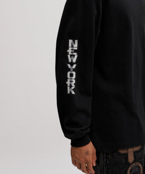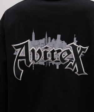 ・背中にブランドロゴとNEW YORKの街並みをモチーフにしたグラフィック