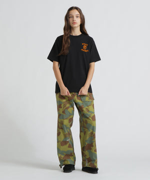 この商品は色落ちする恐れがあります。濃色は着用時の汗や摩擦により色落ちしますので、淡色物と合わせての着用はお避けください。単品でお洗いください。長時間濡れたままにしておくと色落ちしますので、洗濯後は形を整えてすぐに干してください。洗剤や柔軟剤を直接付着させることはお避けください。水に溶かし良く攪拌(混ぜる)してお使いください。色落ち変色の恐れがあります。蛍光剤(蛍光増白剤)や漂白成分の使われた洗剤のご使用はお避けください。熱を使用する全ての乾燥器具のご使用はお避けください。素材の性質上、直射日光や蛍光灯の長時間照射により、色あせする恐れがあります。水洗いの出来る製品でも、つけ置き洗いは厳禁です。水につけ置くことによって染料が流失しやすくなります。すみやかに洗濯し、すすぎを十分に行ってから脱水し、形を整え陰干ししてください。もみ洗いは、避けて下さい。裏返してネットに入れてください。中性洗剤(おしゃれ着洗剤)のご使用をおすすめします。弱く絞ってください。遠心脱水の際は、短時間で処理してください。プリント部分にアイロンを当てないで下さい。