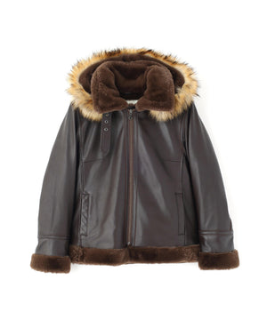 ・本格的なミリタリースタイルと、ラグジュアリーな素材感が融合したレザーフーディージャケット