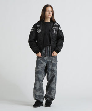 ・ブランドを象徴する定番のMA-1をベースに、ATEEZの世界観を体現するオリジナルパッチとライニングデザインを落とし込みました。