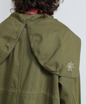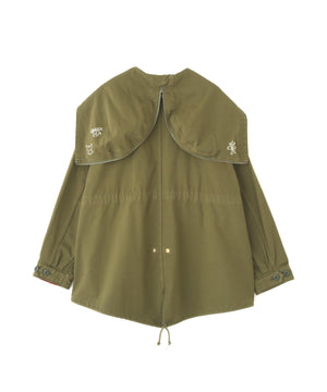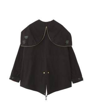 ・フード部分内側に刺繍を施していて、フードのファスナーを開けると見えるような仕様になります。